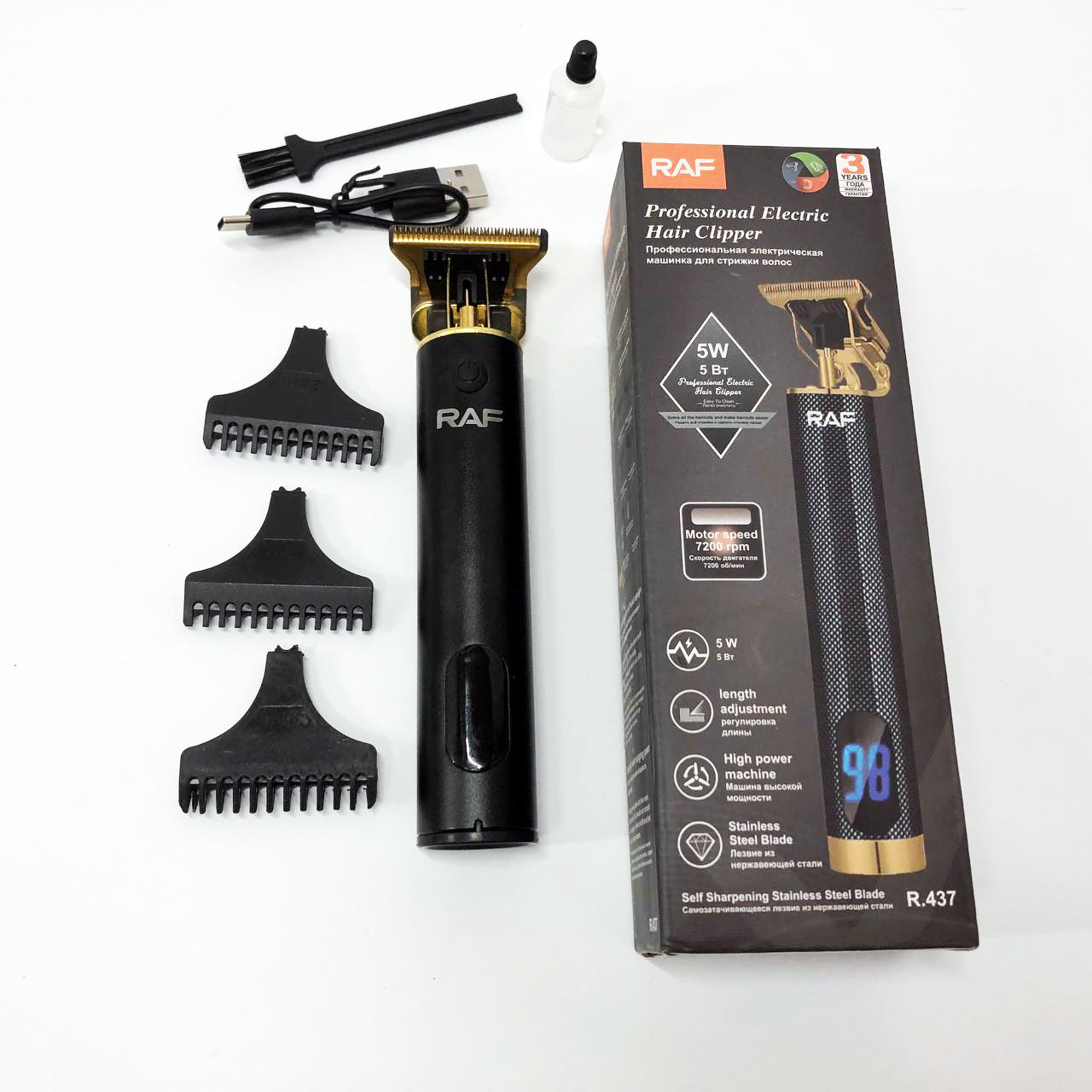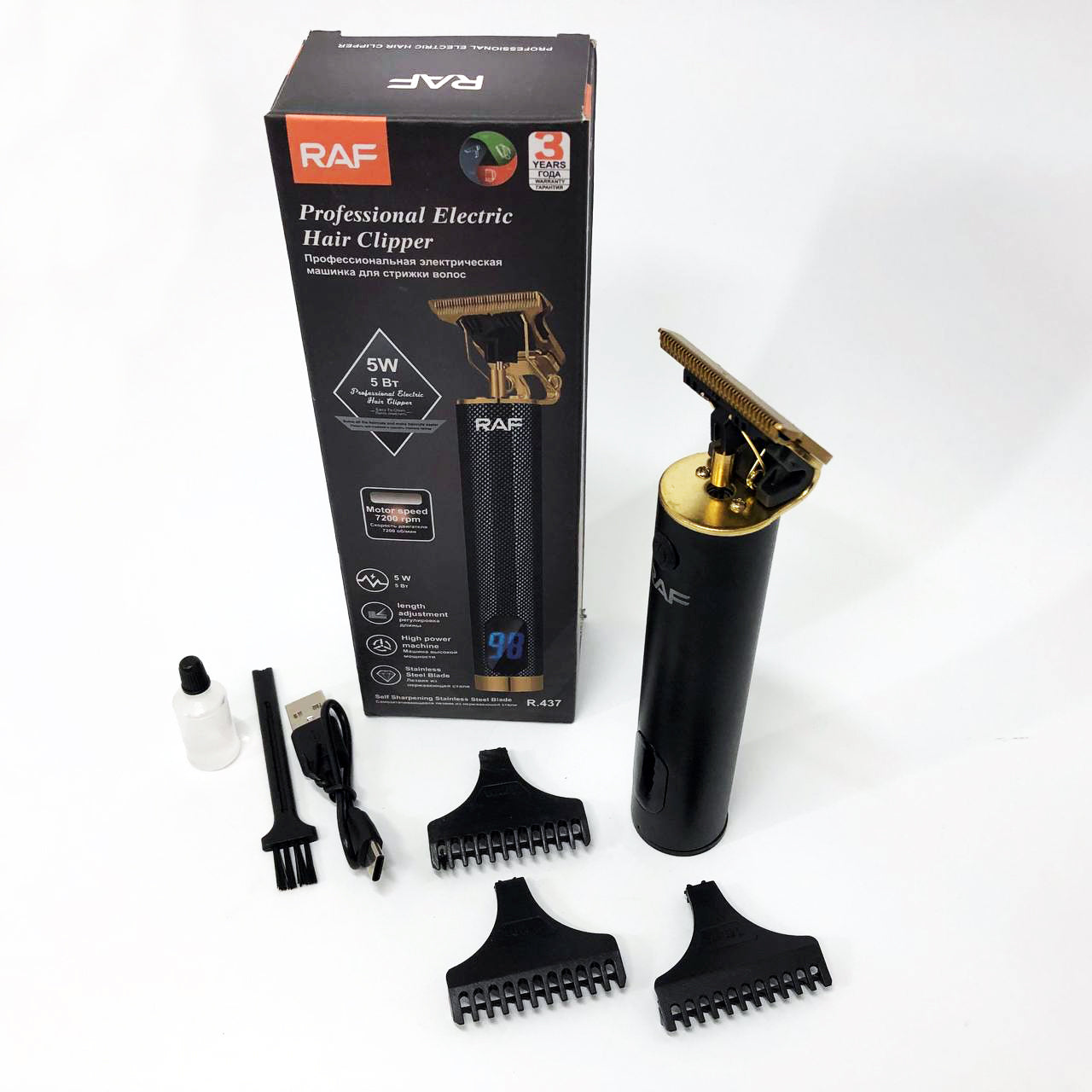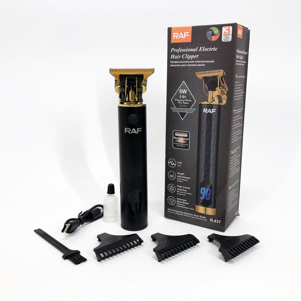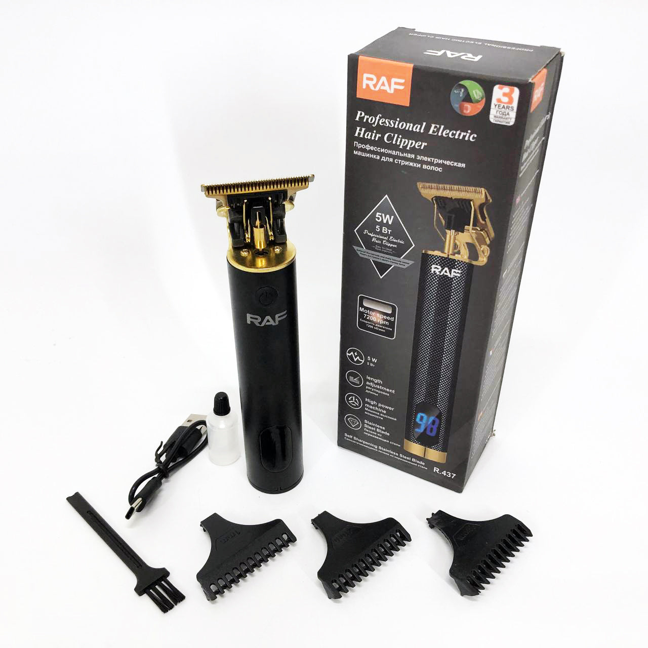 Машинка для стрижки волос и бороды с насадками Raf мужской триммер окантовочная машинка с зарядкой от USB
