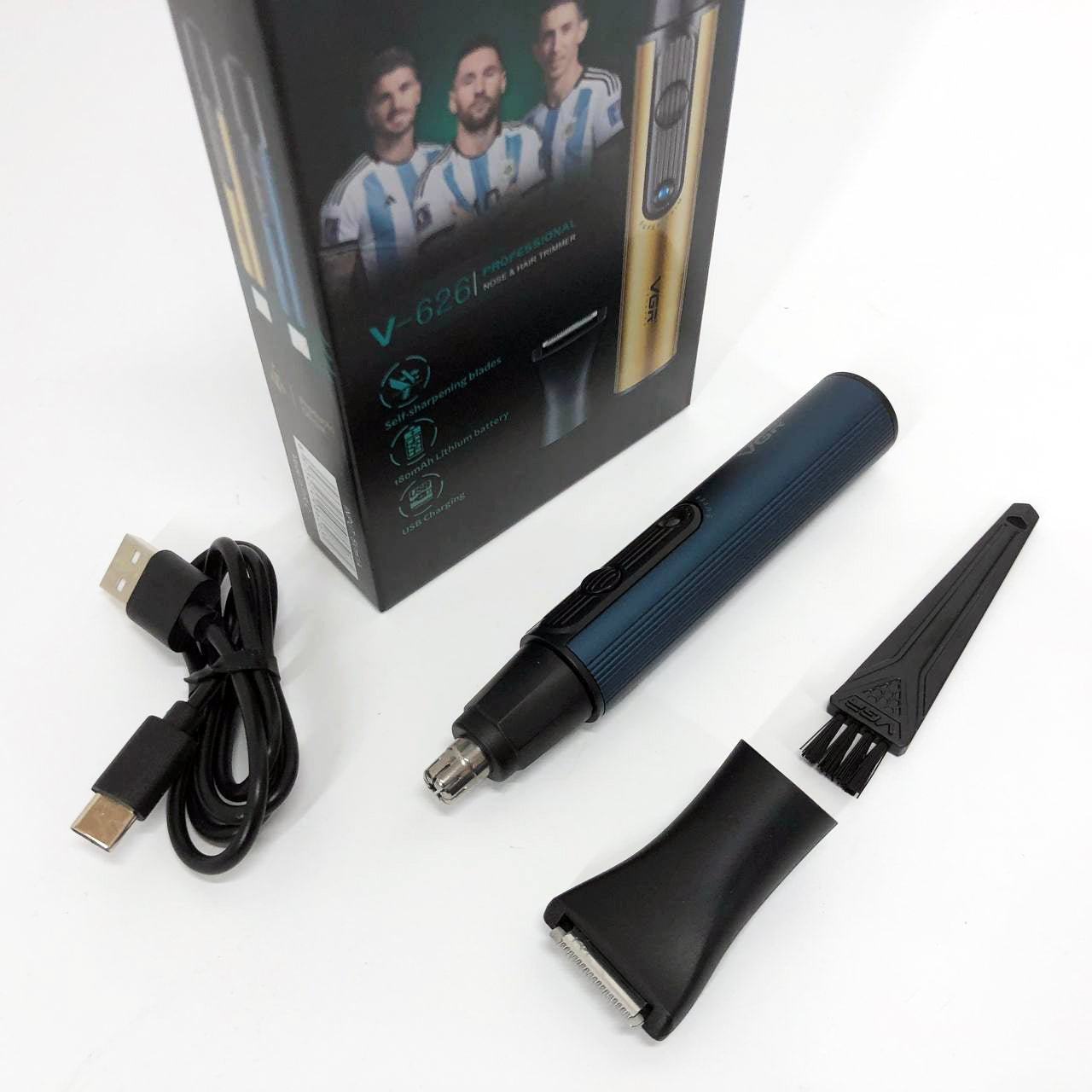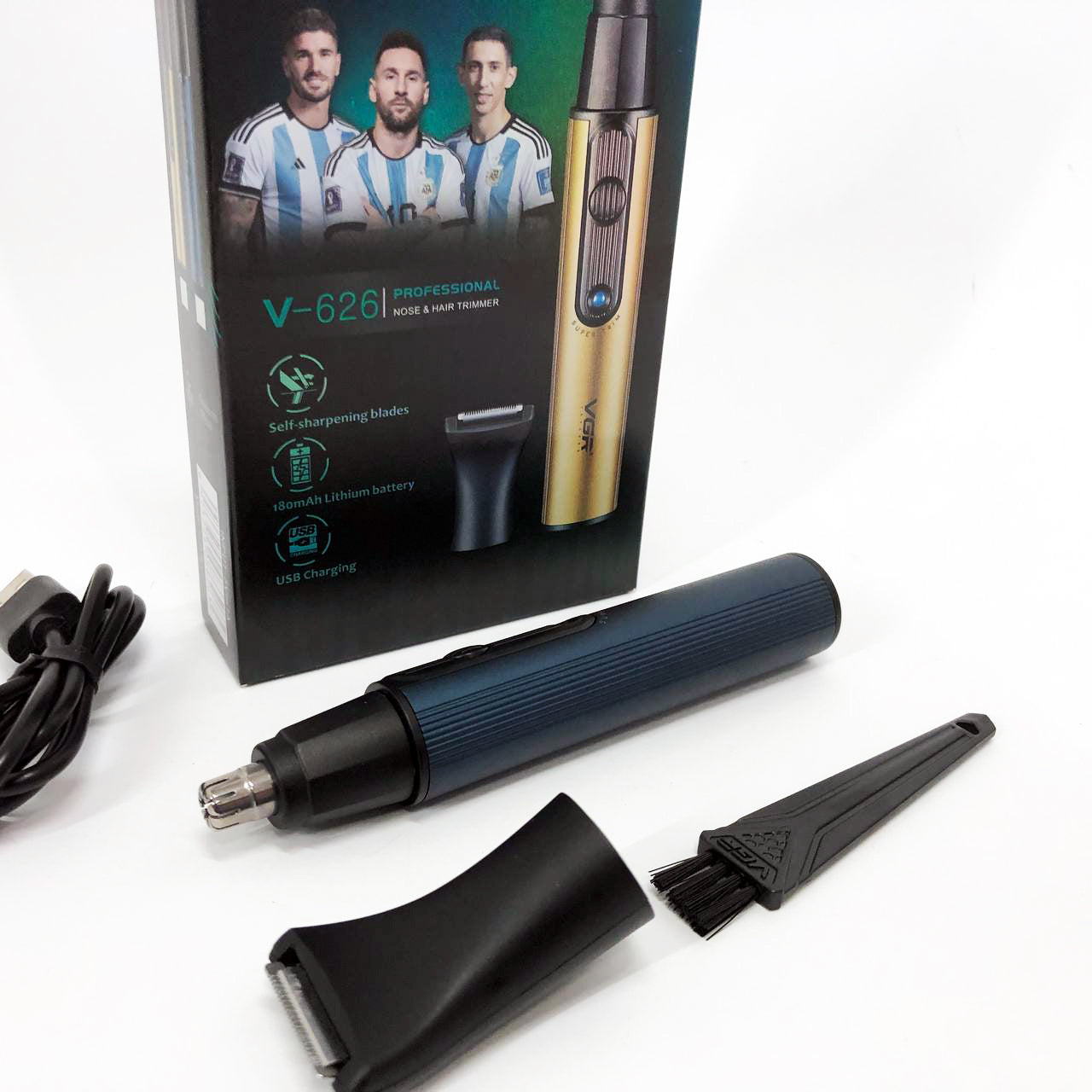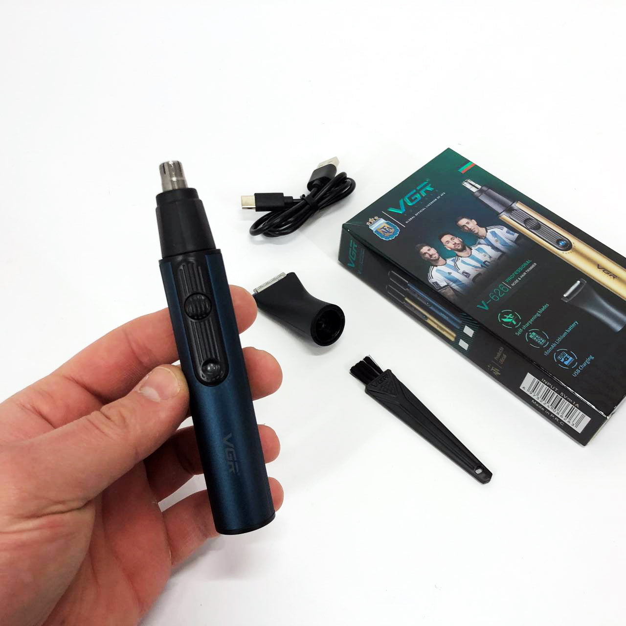 Триммер для носа и ушей V--626 - это профессиональный инструмент для ухода, который объеденяет в себе два важных функциональных элемента. Изготовлен из висококачественного металла. Мужской триммер обеспечивает надежность и долговечность в использовании. Благодаря эргономичному дизайну машинка для носа удобно лежит в руке, давая возможность легко достигать трудных мест.
