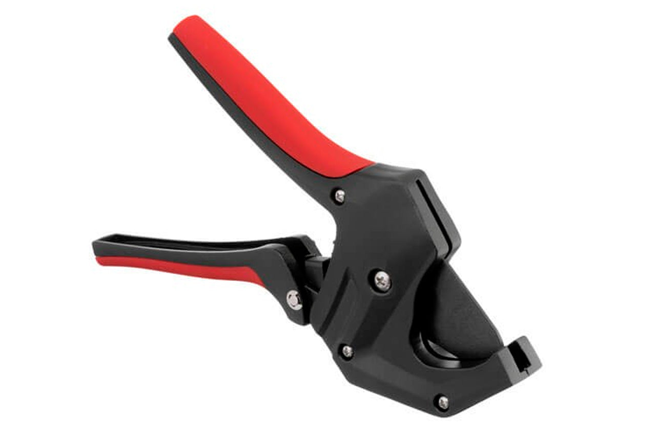 Труборез NT-0004 предназначен для резки различных пластиковых (PVC) труб, кабель-каналов, садовых шлангов и пр. Обеспечивает точный рез, без деформации стенок изделия. Мощное острое лезвие трубореза изготовлено из закаленной легированной стали SK5. Обладает высокой стойкостью к механическим повреждениям и нагрузкам. V-образная форма лезвия с острым углом позволяет получить аккуратный, чистый срез трубы, без заусениц. Резец с тефлоновым покрытием отлично скользит по материалу и гарантирует легкий, быстрый рез. Форма рабочей части трубореза обеспечивает глубокую посадку трубы, и позволяет сделать работу более удобной. Храповая система трубореза значительно облегчает процесс, с каждым нажатием происходит фиксация лезвия в определенном положении. Это позволяет равномерно распределить нагрузку на труборез, в результате работа продвигается намного быстрее. Двухкомпонентные рукоятки не скользят и отлично лежат в руке, таким инструментом комфортно работать на протяжении длительного времени! Особенности: Быстрый, особо точный рез Цельнолитой прочный корпус из алюминиевого сплава Широкое лезвие с тефлоновым покрытием Автовозврат достигается путем отведения ручки Максимальный диаметр разрезаемой трубы — 42 мм Материал рукоятки: алюминиевый сплав; Общая длина: 230 мм; Особенности: автовозврат, тефлоновое покрытие лезвия, двухкомпонентные ручки; Материал лезвия: SK5; Диаметр труб: 0-42 мм