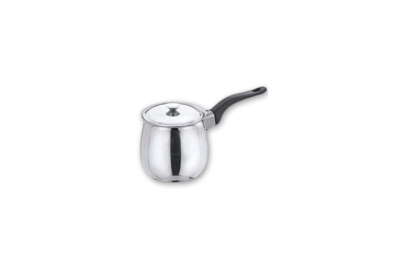 Турка нержавеющая с бакелитовой ручкой.Имеет большой объем 700 мл, есть крышка.Ручка не нагревается во время готовки.Красивый дизайн подойдет в любую кухню.