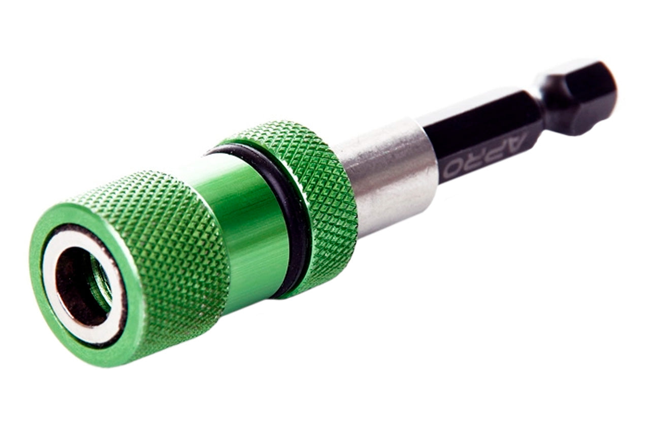 Удлинитель для бит Apro используется для быстрой установки и надежного удержания любых насадок, бит, сверл. Применяется с электроинструментом (дрели, шуруповерты). Длина: 60 мм.