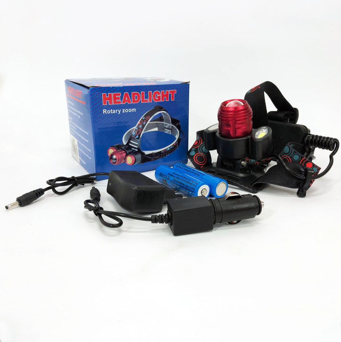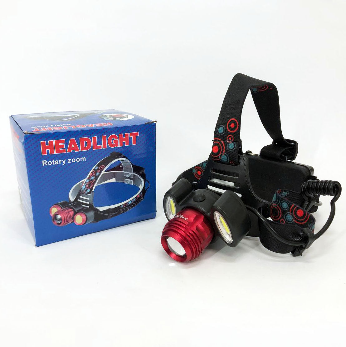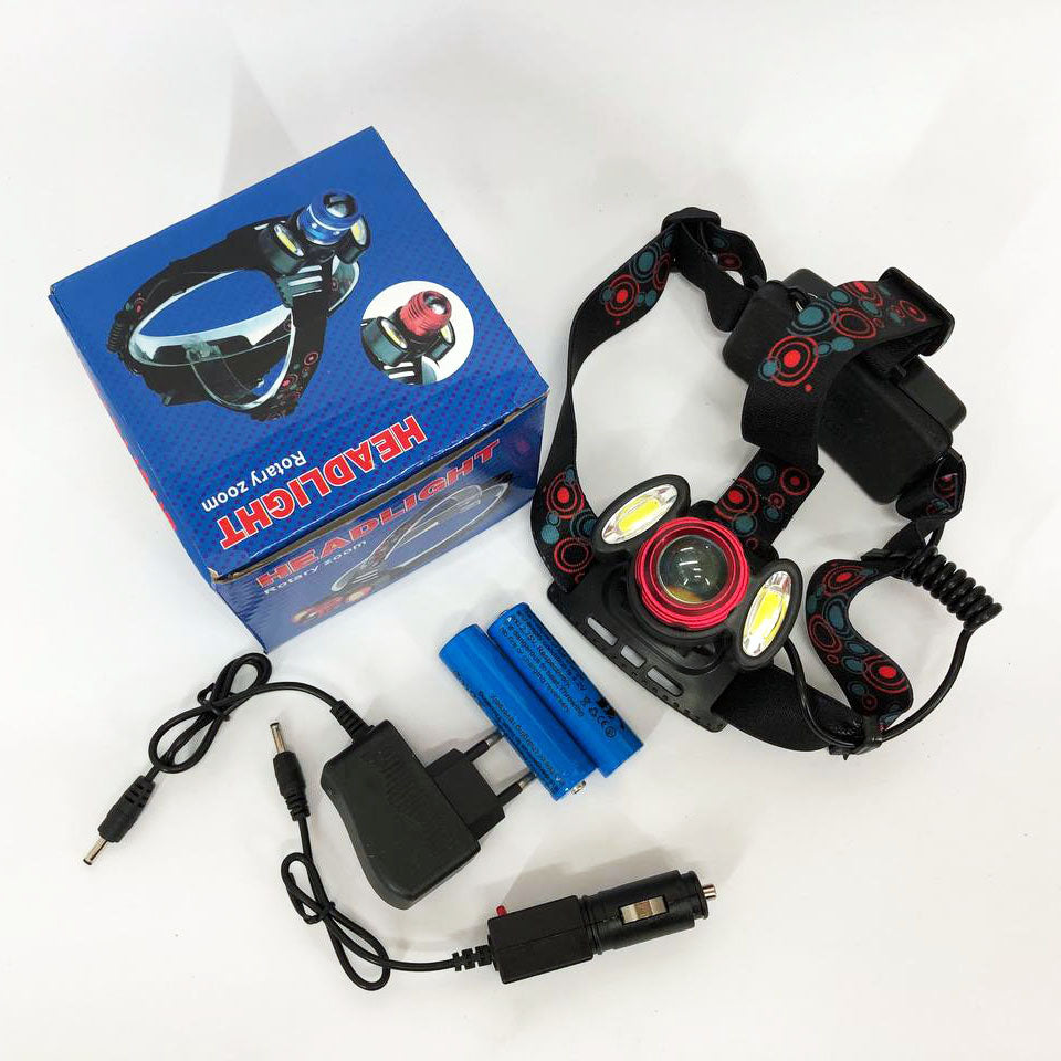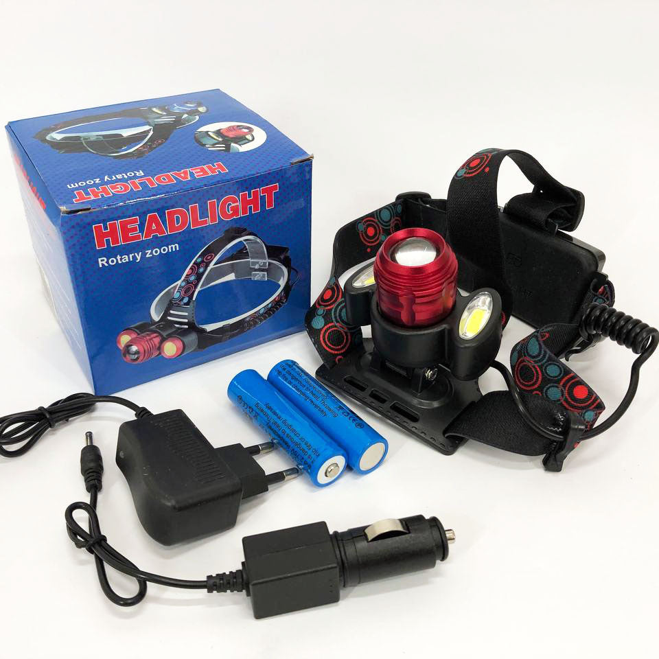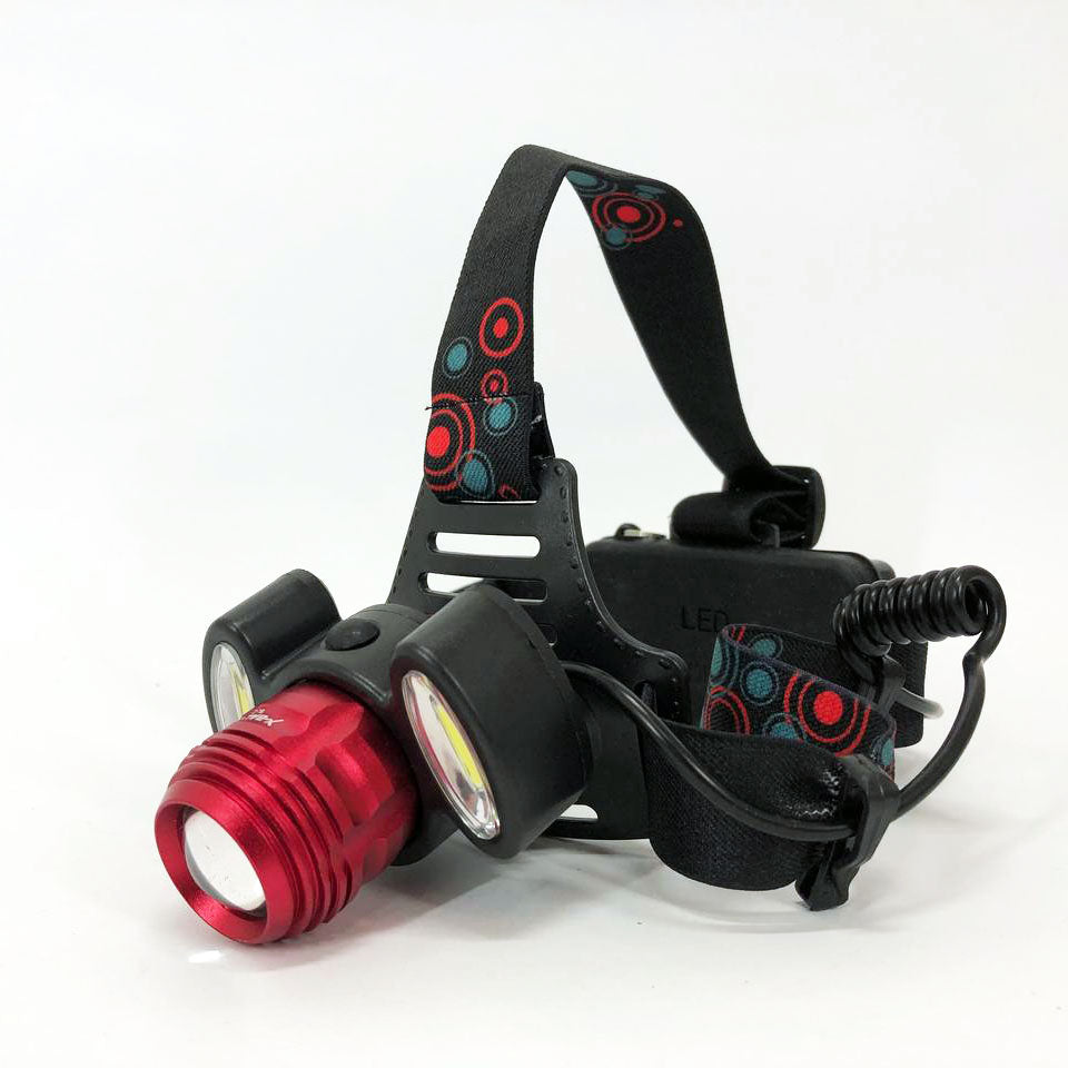 Универсальный налобный фонарь 2117-T6+2COB 2х18650 3 светодиода 4 режима работы свечение 1500 люмен