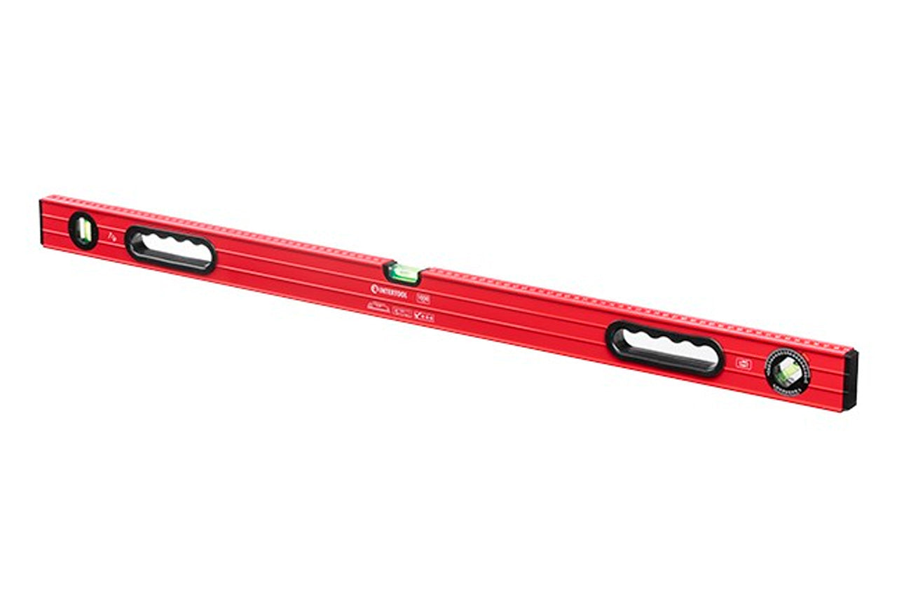 Уровень Intertool MT-1270 с поворотной капсулой предназначается для определения состояния различных поверхностей. Длина измерительного прибора составляет 1000 мм или 1 метр, а корпус изготовлен из алюминиевого профиля толщиной 1,2 мм. Прибор оснащен двумя удобными рукоятками с прорезиненным основанием. На корпусе имеется горизонтальная капсула, которая является основной, вертикальная, а также поворотная для определения угла отклонения измеряемой поверхности. Торцевые части инструмента имеют пластиковое покрытие, которое исключает попадание внутрь прибора различных засорений, а также предотвращает получением травмы пользователем. Строительный пузырьковый уровень является одним из главных инструментов строителя, при помощи которого не только контролируется процесс сооружения стен, полов и прочих перекрытий, но еще и определяется их ровность после завершения работ.