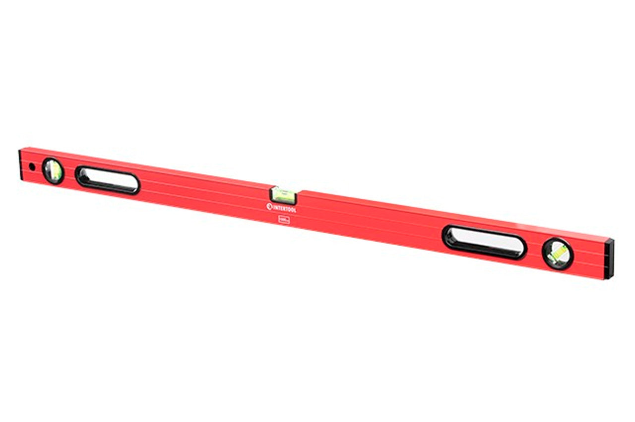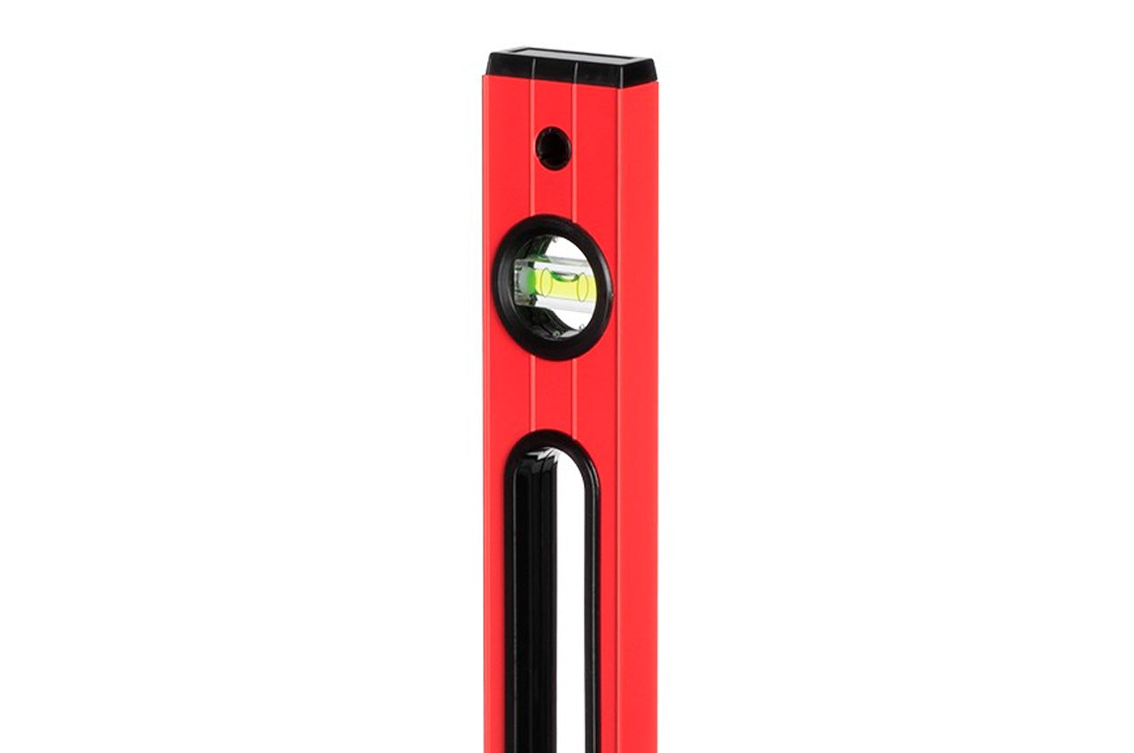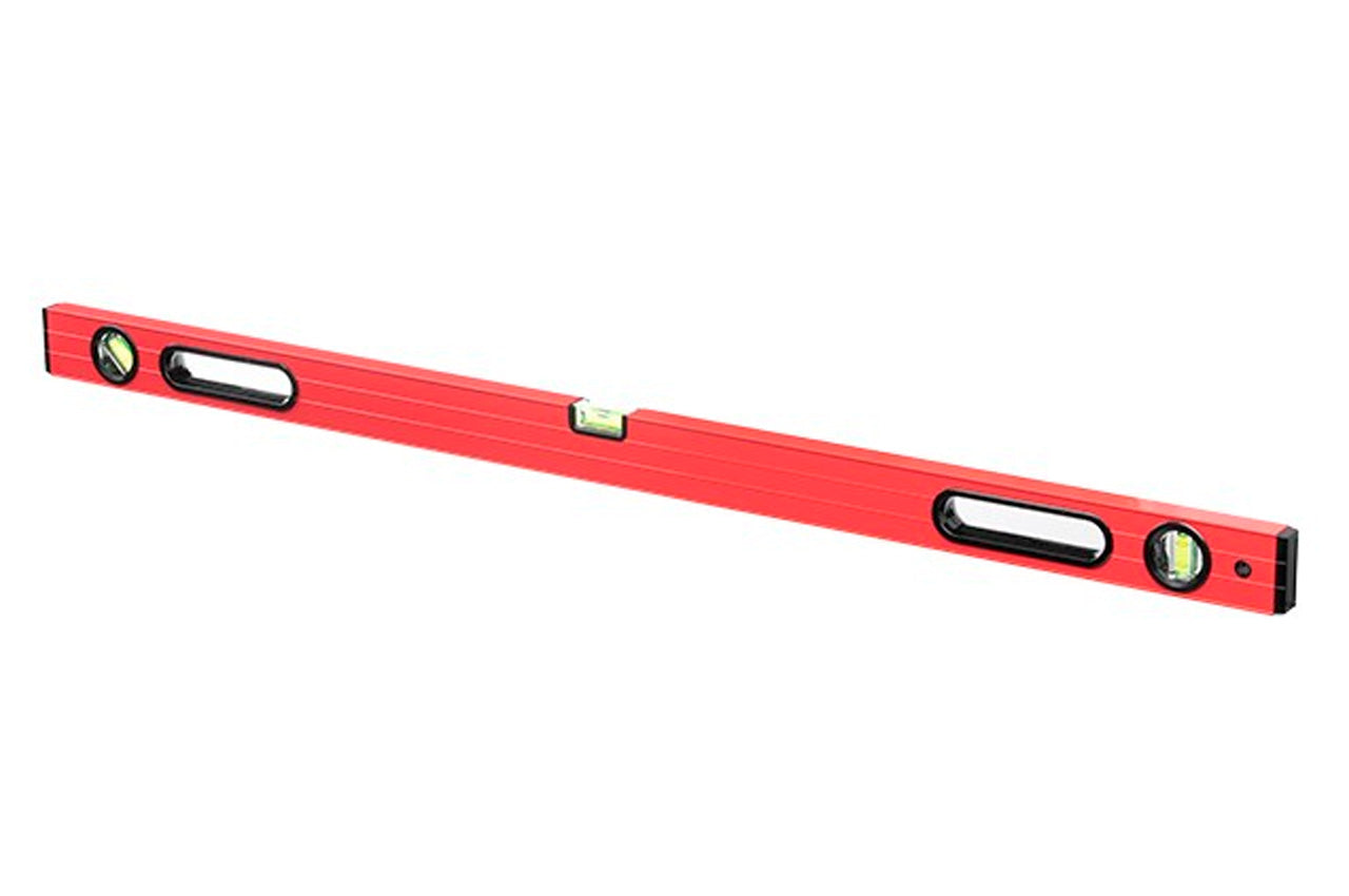 Уровень прямоугольного сечения длиной 100 см, имеет 3 встроенных уровня (вертикальный, горизонтальный и еще один под углом 45°). Длина уровня: 100 см; Толщина профиля: 1,0 мм