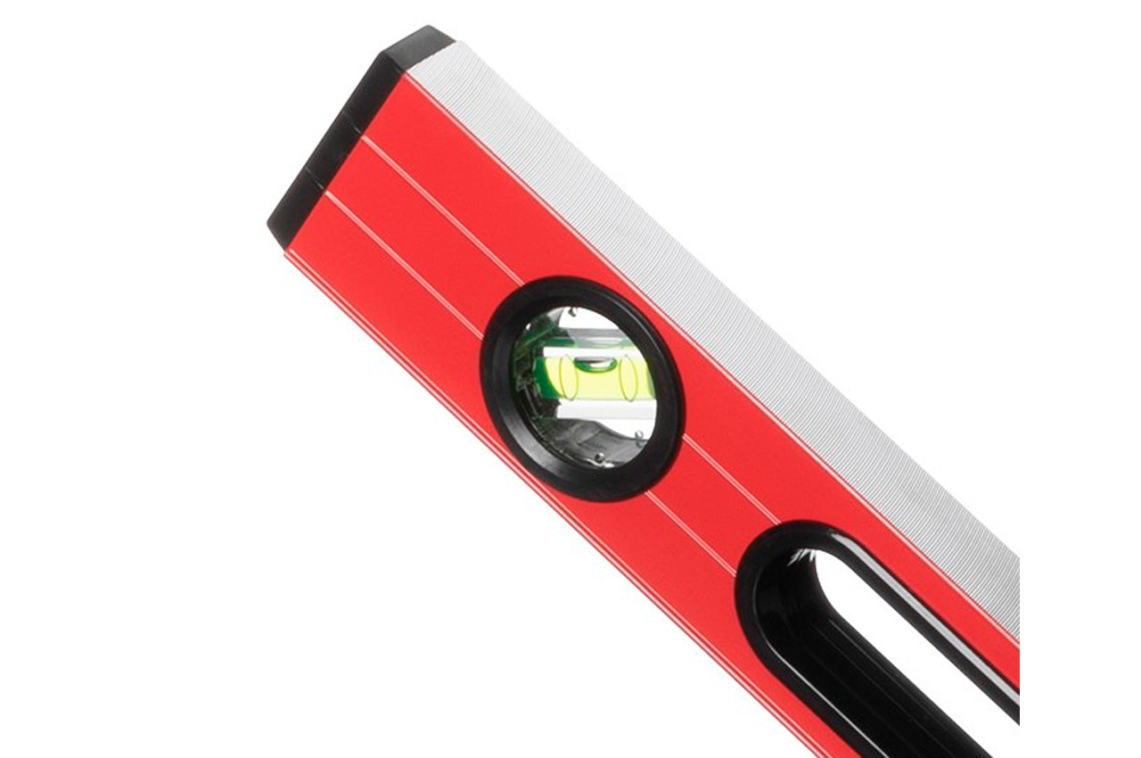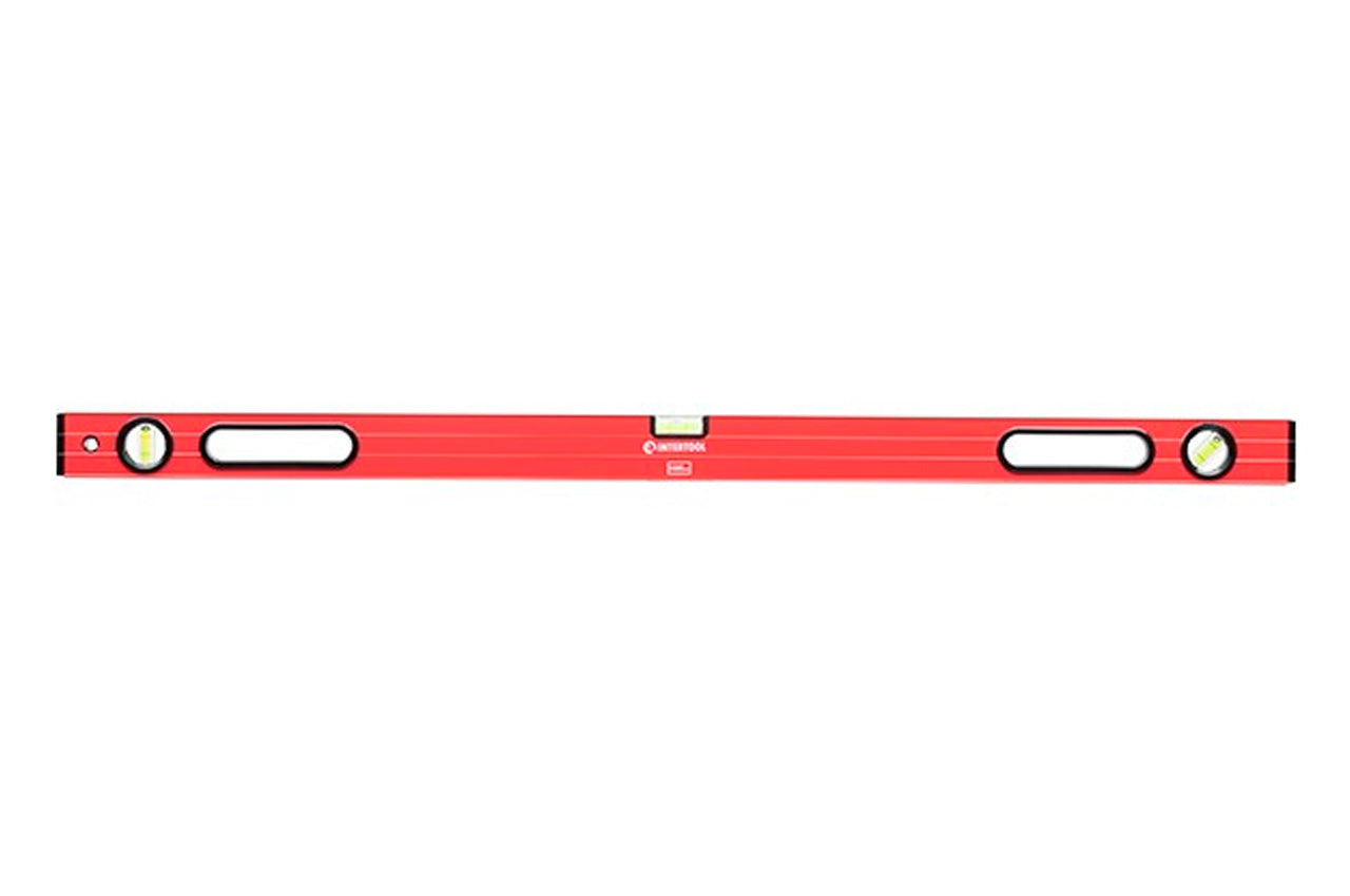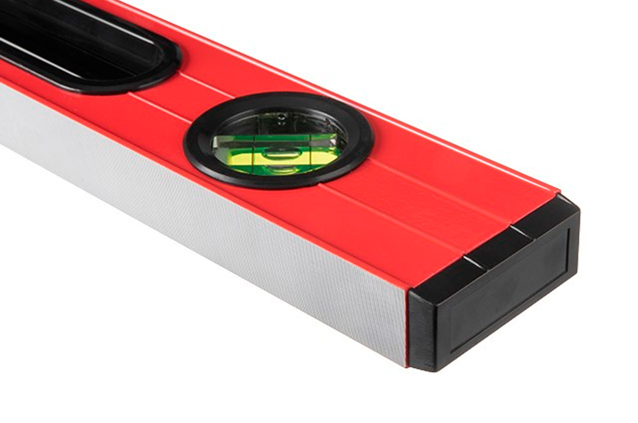 Уровень прямоугольного сечения длиной 100 см, имеет 3 встроенных уровня (вертикальный, горизонтальный и еще один под углом 45°). Длина уровня: 100 см; Толщина профиля: 1,0 мм