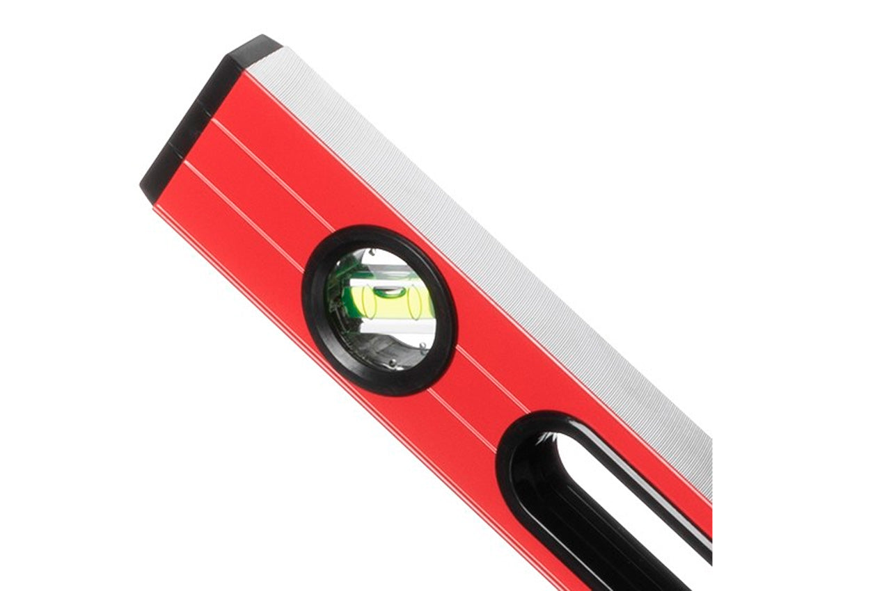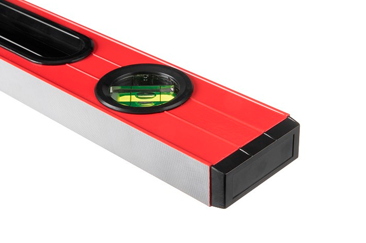 Корпус уровня изготовлен и крепкого экструдированного алюминия, что гарантирует износостойкость и долговечность изделия. Ребра жесткости усиливают конструкцию и делают уровень устойчивым к механическим повреждениям. Фрезерование одной стороны уровня обеспечивает максимально плотное прилегание к поверхности, что облегчает работу мастера. Уровень легкий, не отягощающий руки, им удобно работать длительное время.