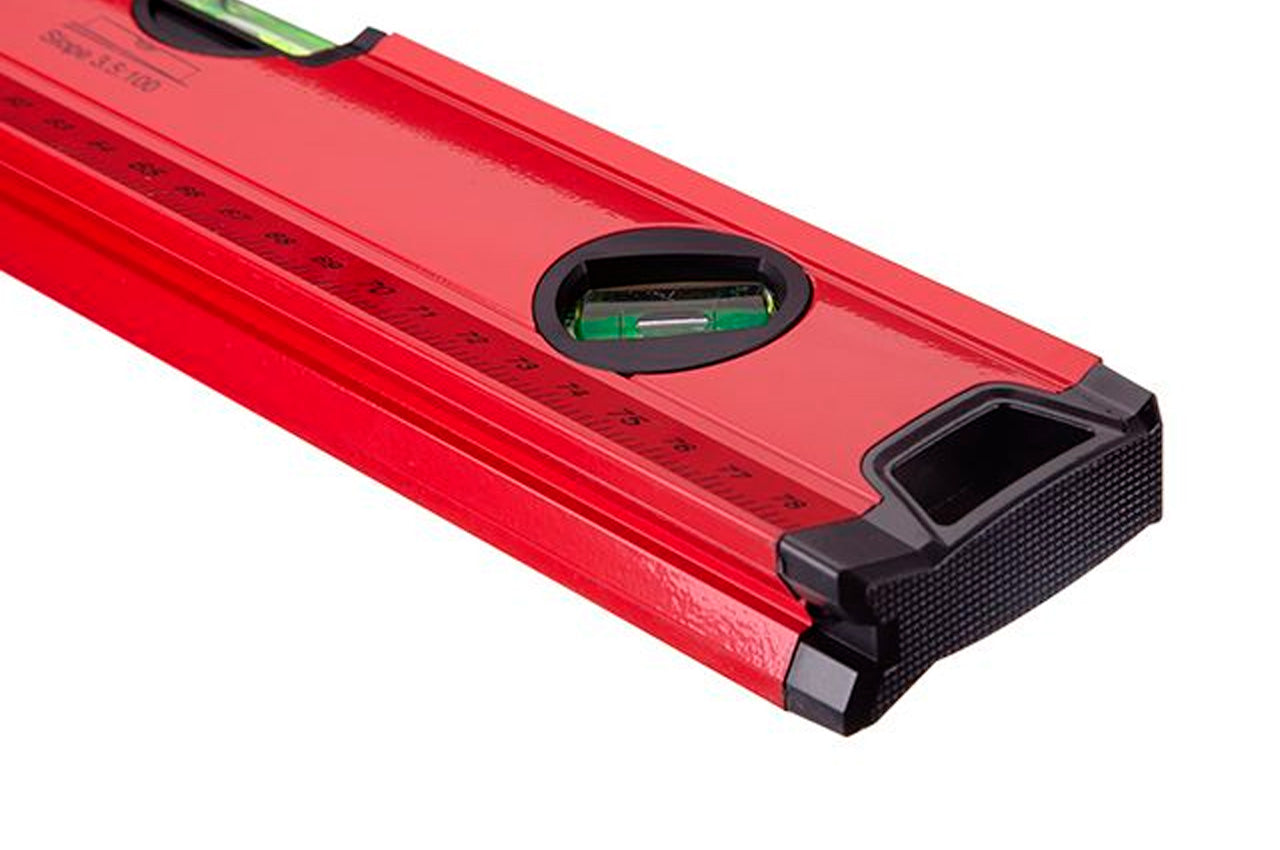 Предназначается для определения горизонтального и вертикального расположения поверхностей, а также горизонтальности полов, балок и прогонов. Уровень прямоугольного сечения длиной 80 см, имеет 5 встроенных уровней (вертикальный, горизонтальный, под углом 45° и 2 специальных (1,5/100 и 3,5/100).