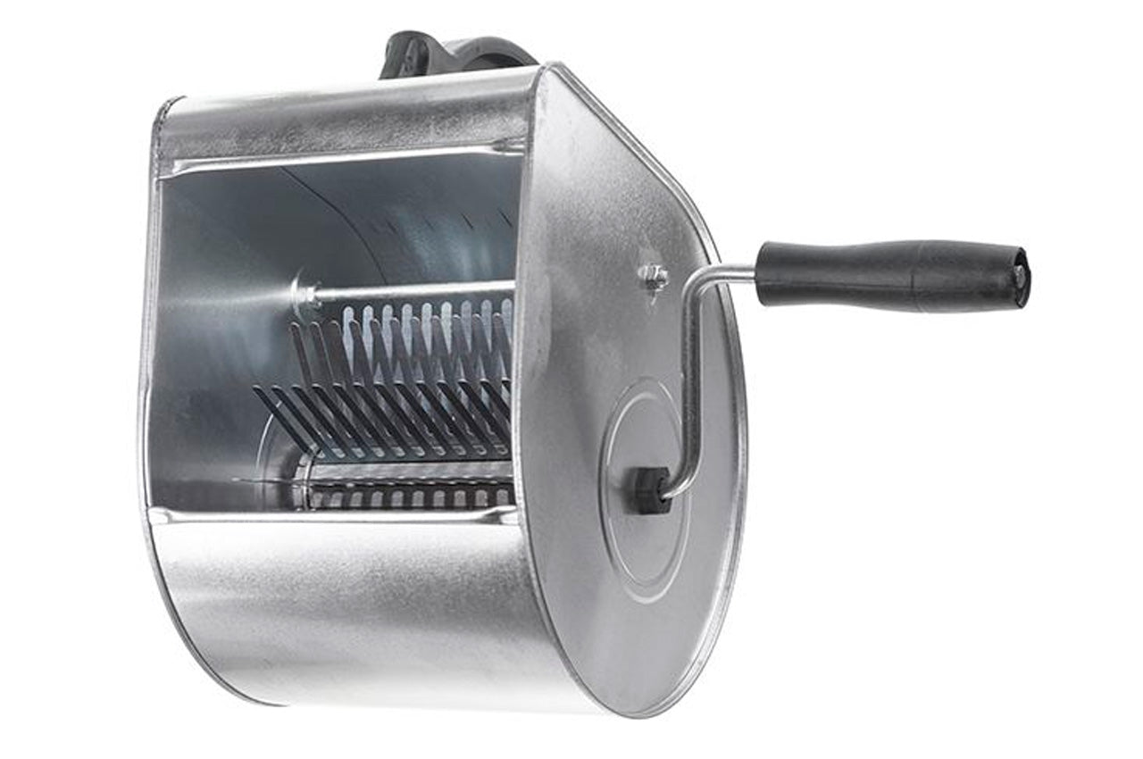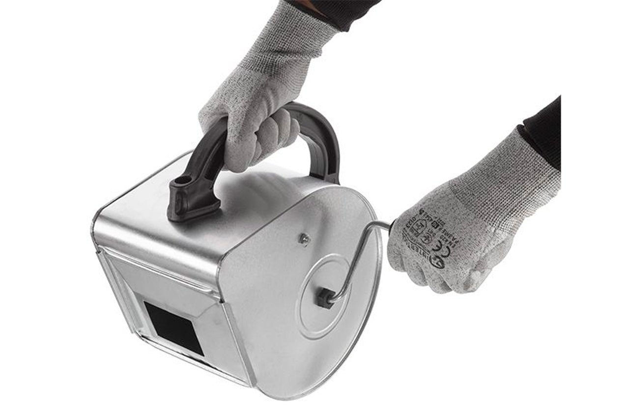 Устройство для нанесения штукатурки KT-0001 изготовлено из качественного металла, сверху оснащено надежно закрепленной пластиковой ручкой. Вращаемая боковая ручка, приводит в действие пружинистые гребенки с пластинчатыми зубцами, находящиеся на дне устройства. По пути вращения, зубцы наталкиваются на ударный стержень и отбрасывают налипшую на них строительную смесь в расположенное на стенке устройства отверстие. Применяется для нанесения штукатурки методом "набрызга" снаружи помещений. Обработанная таким методом поверхность становится ровной без дополнительного разглаживания. Преимуществом использования устройства для нанесения штукатурки является экономичность расходования материалов и простота использования.