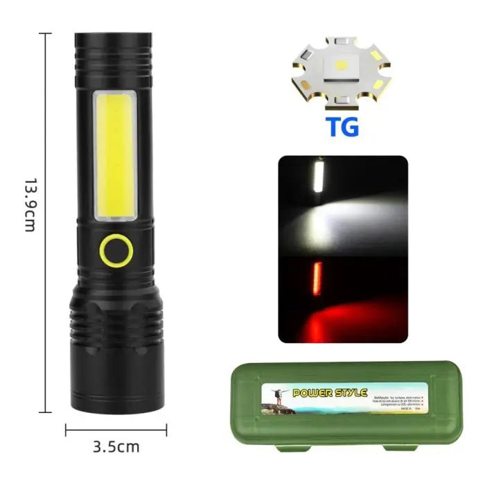 Фонарь BN-537-TG+COB (white/red) – мощный светодиодный фонарь с двумя режимами освещения: белым и красным, что позволяет выбрать подходящий свет в разных условиях. Благодаря функции зума, вы можете регулировать ширину светового луча – от широкого до точечного, что делает его универсальным в использовании.