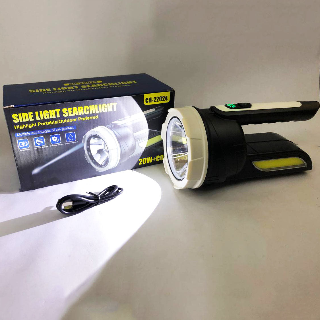 - Количество режимов работы: 4 (5W - 100%, 5W - 50%, 5W - стробоскоп, COB - 100%)