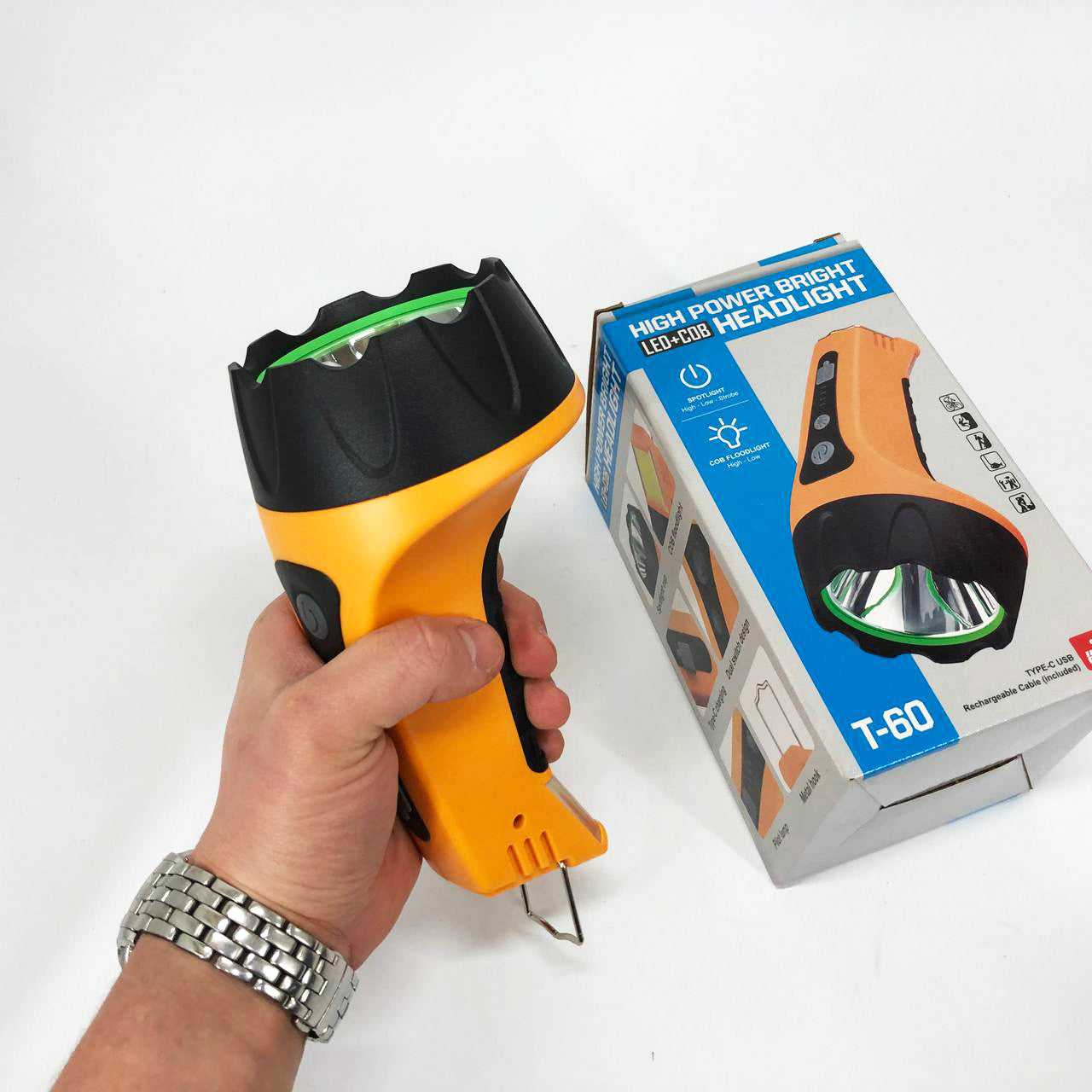 Переносной фонарь T60-3W+COB — удобный гаджет, который активно применяется в жизни. Среди основных преимуществ можно выделить удобную ручку, с помощью которой можно переносить устройство на любое место.