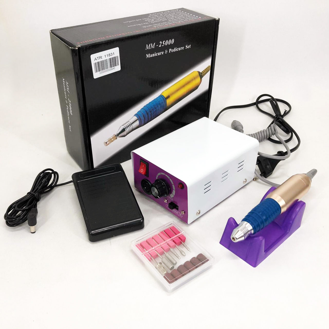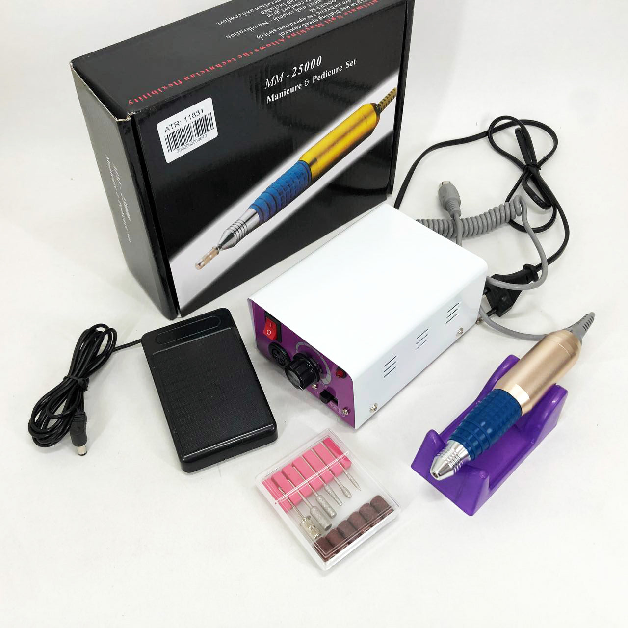 Фрезер Машинка для Маникюра и Педикюра Beauty nail NN 25000 ,25 тыс оборотов отлично подойдет для машинного маникюра, педикюра и коррекции нарощенных ногтей. Плавная регулировка оборотов от очень низких до высоких–25000 об/мин. Реверс – изменение направления вращения фрезы. Ножная педаль выполняет функции включения и выключения мотора и сделает вашу работу Вам в удовольствие. Также имеется удобная подставка под ручку.