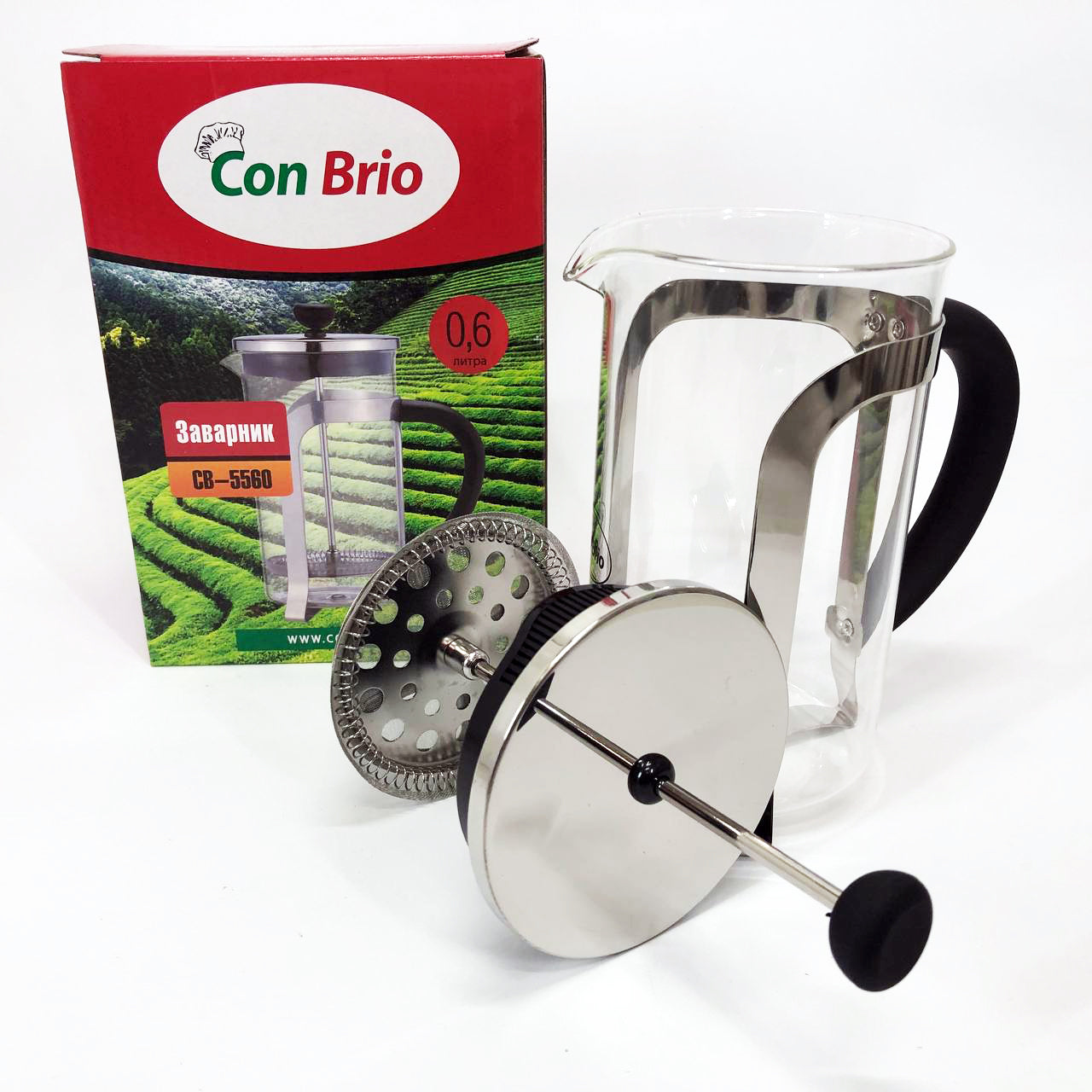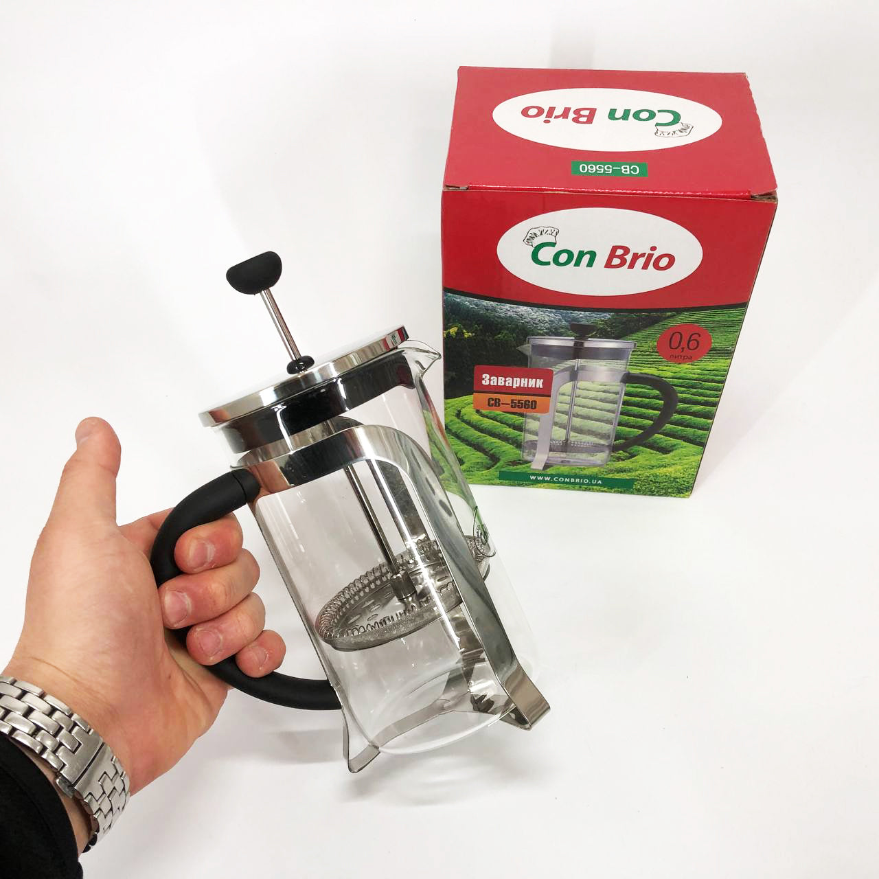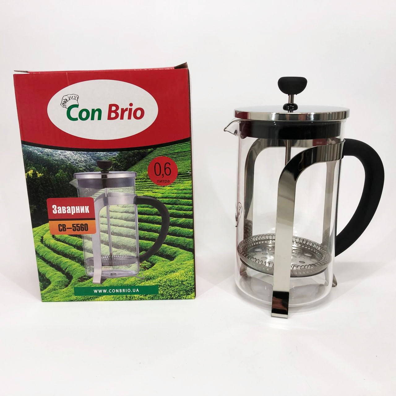 Френч-пресс Заварник для чая и кофе Con Brio CB-5560 600 мл, Чайник самовар стеклянный для заварки