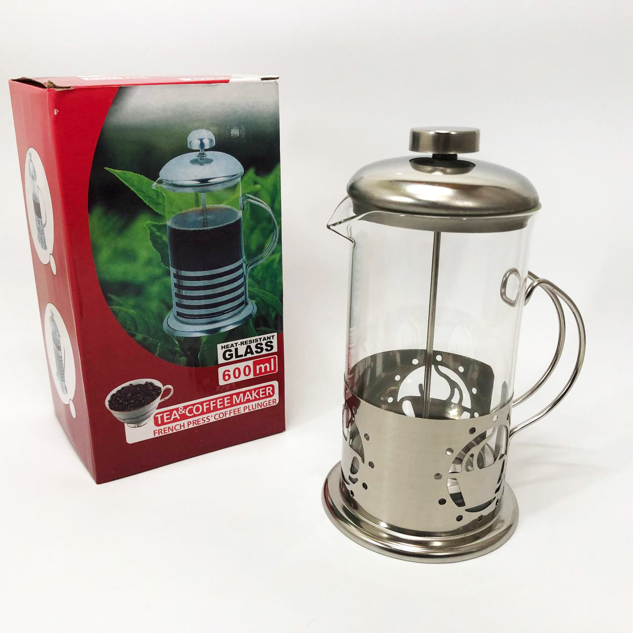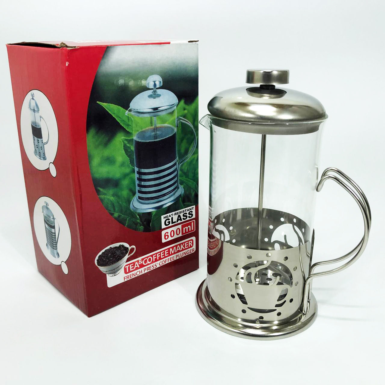 Френч-пресс заварник металлический корпус UNIQUE UN-1152 600 мл, Стеклянный заварочный чайник для чая