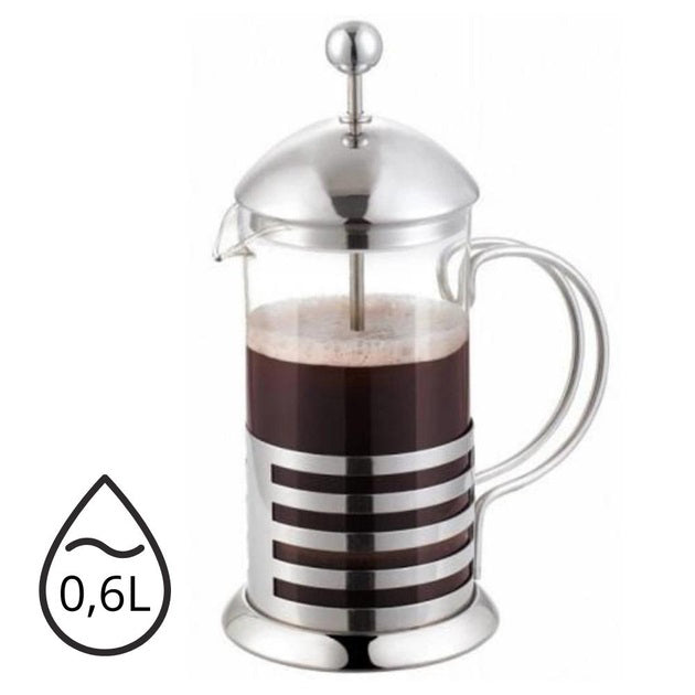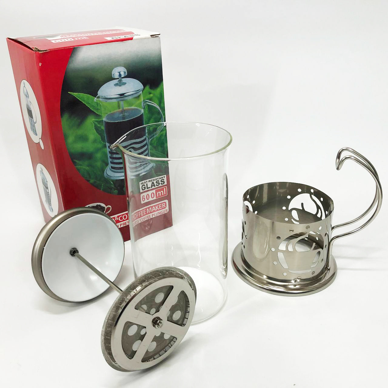 - Колба помещена в оправу с ручкой, комплектуется крышкой с пресс-фильтром из нержавеющей стали.
