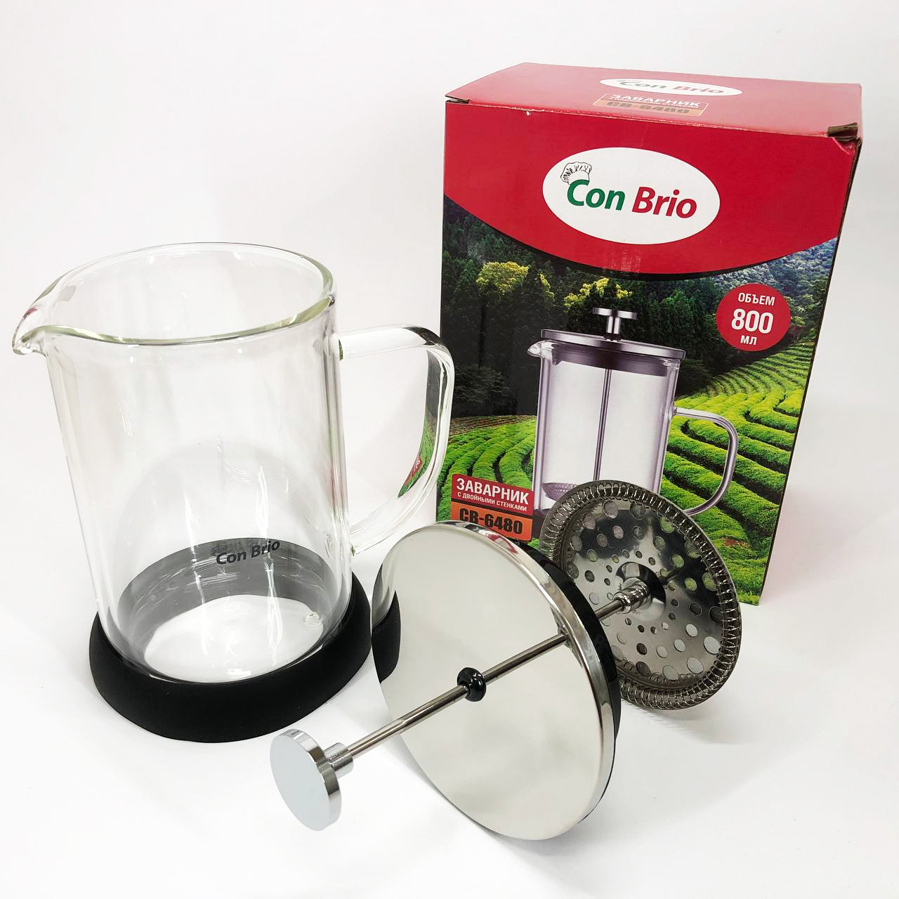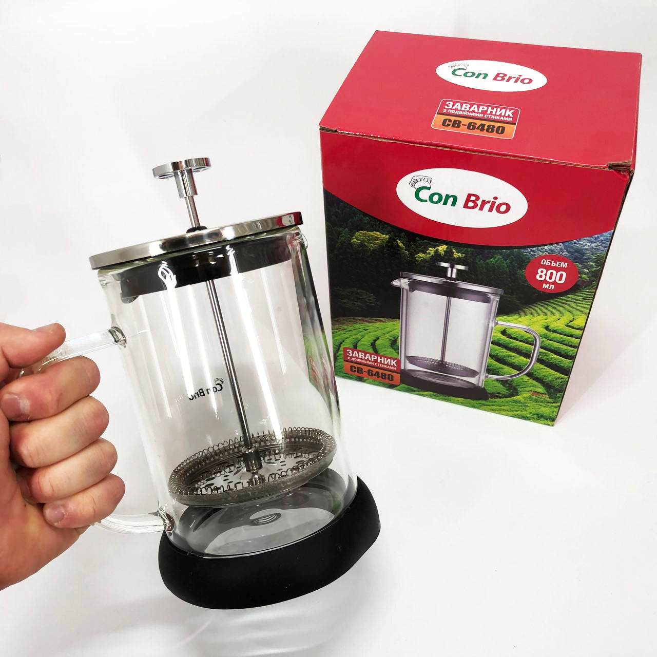 Френч-пресс с двойными стенками Con Brio CB-6480 800 мл, Заварник для чая с прессом многоразовый