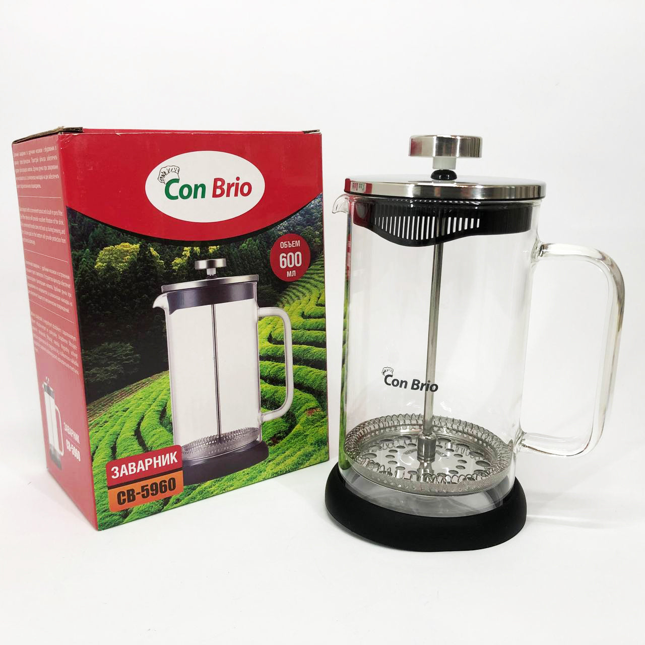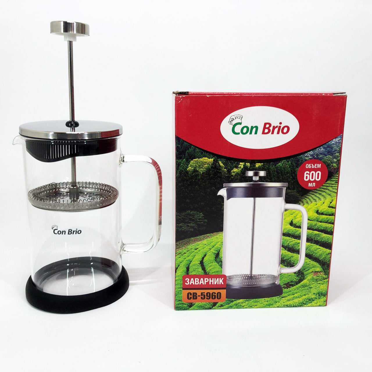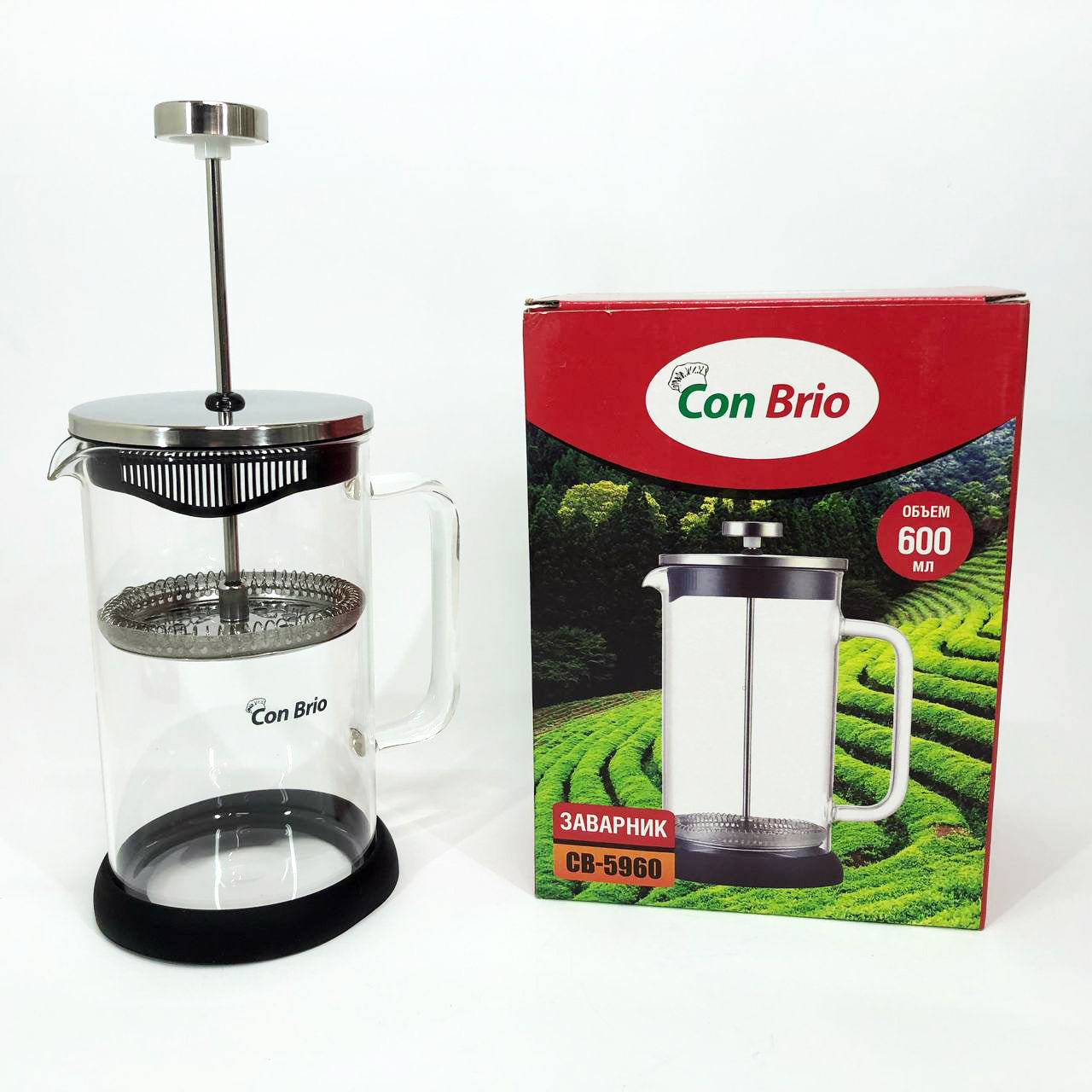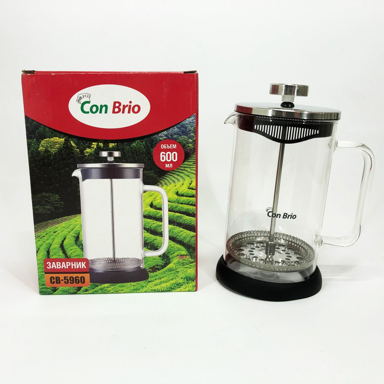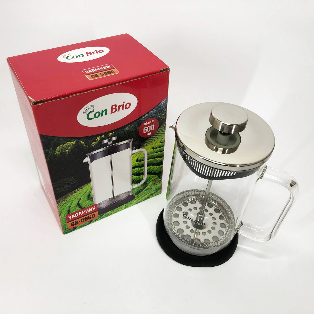Френч-пресс Con Brio СВ-5960 600 мл, Стильный чайник для заварки, Стильный стеклянный заварочный чайник