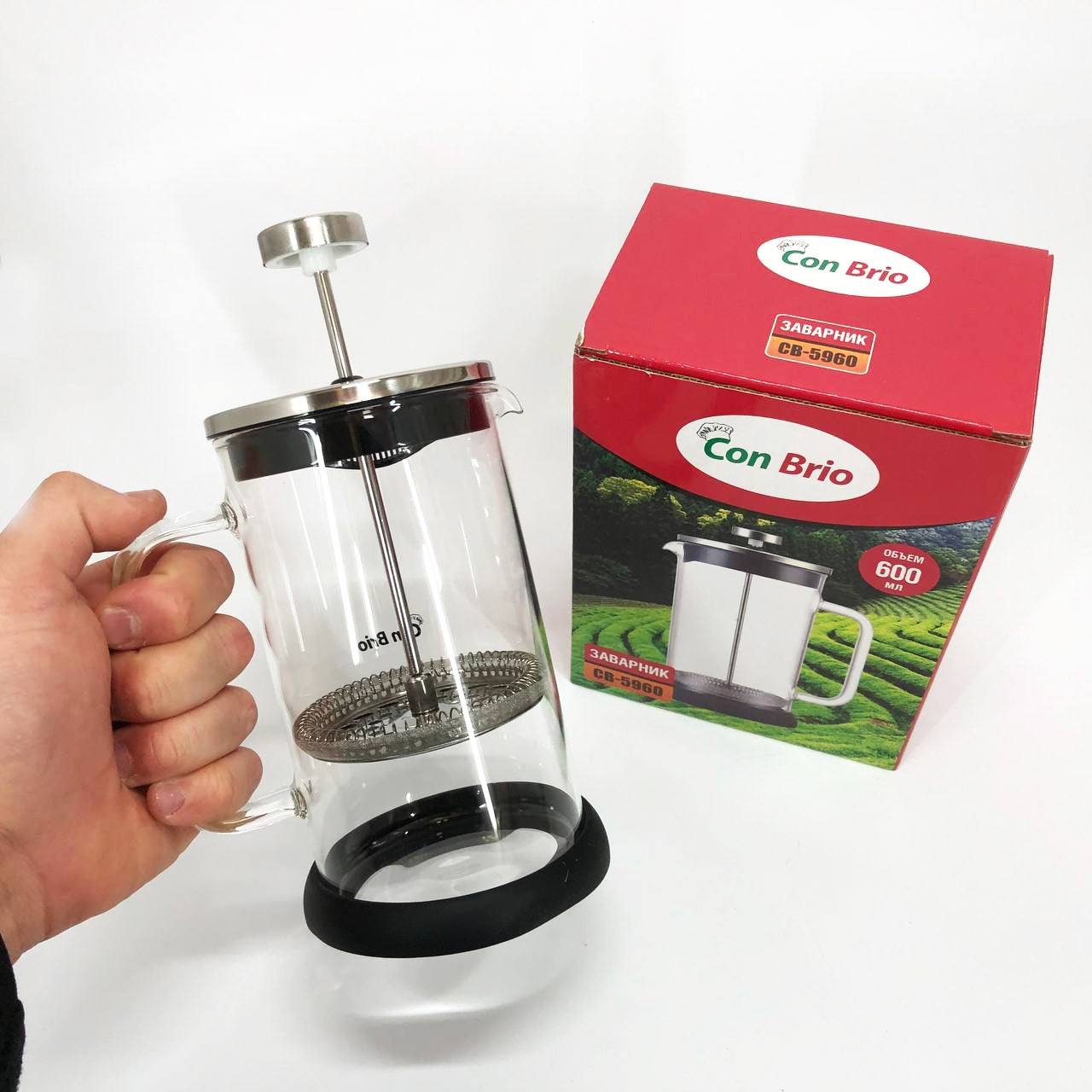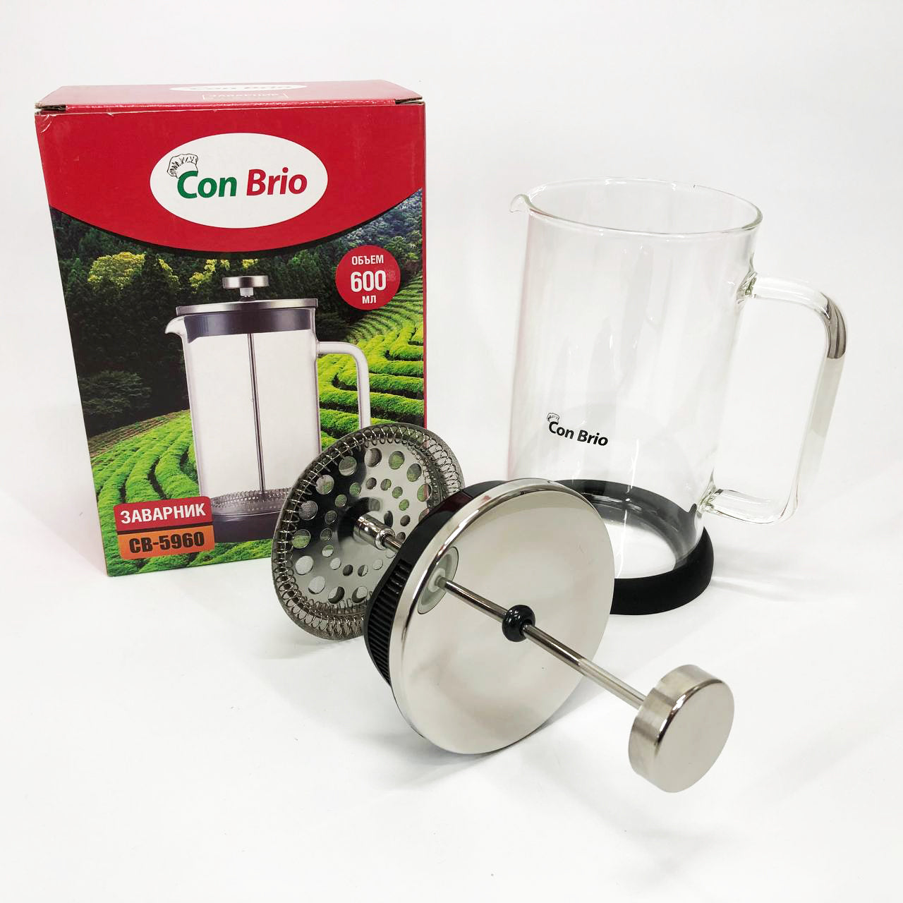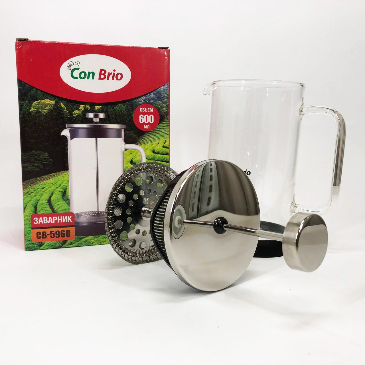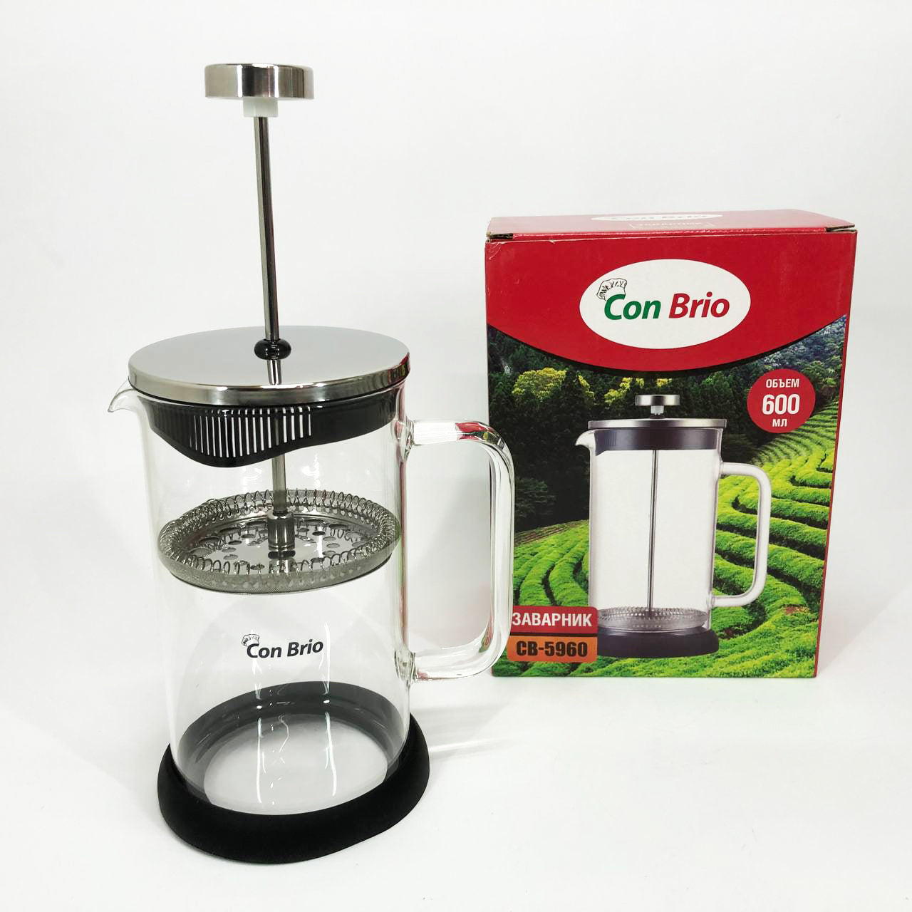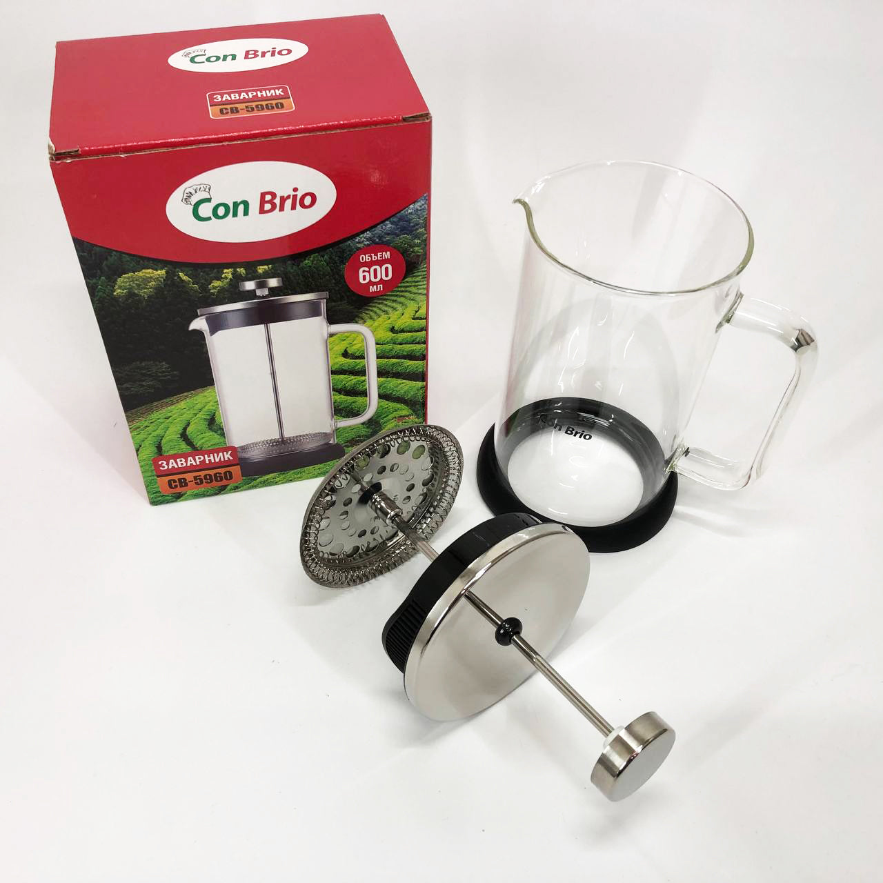 Френч-пресс Con Brio СВ-5960 600 мл, Стильный чайник для заварки, Стильный стеклянный заварочный чайник