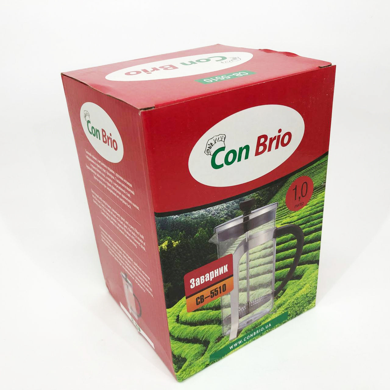 Френч-пресс Con Brio 1000 мл стекло нержавейка CB-5510, Чайник для заваривания трав, Заварник прозрачный