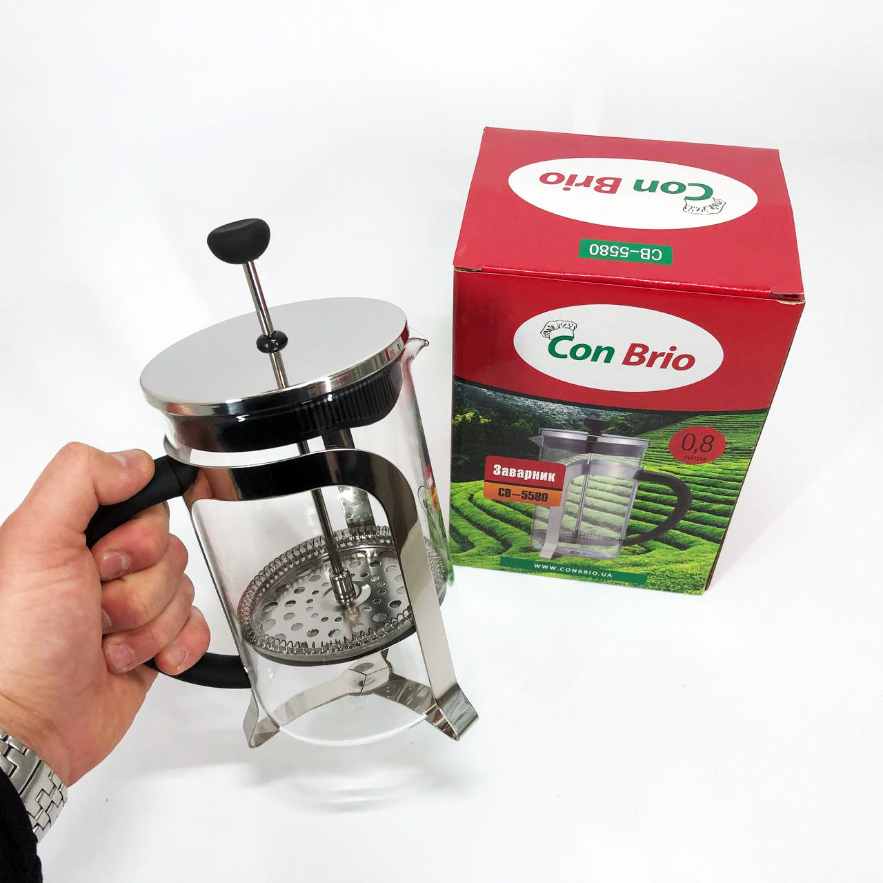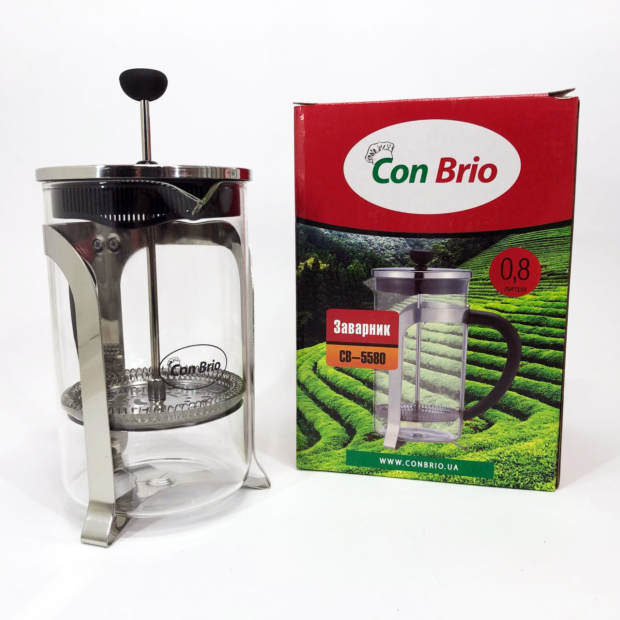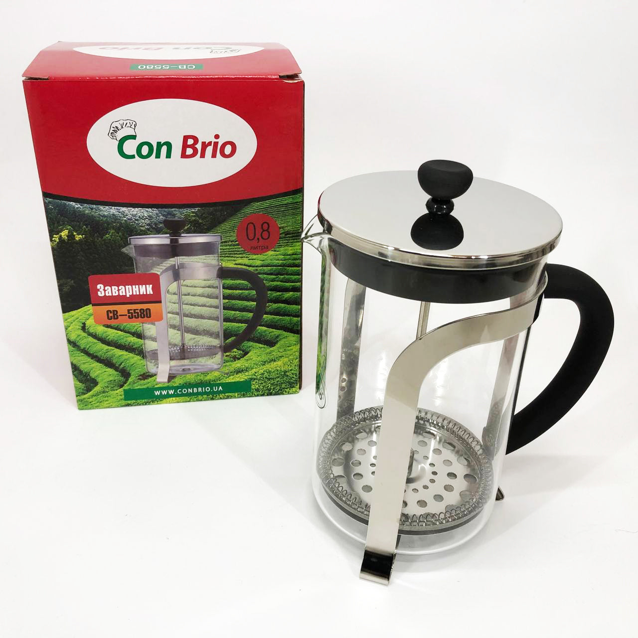 Френч-пресс Con Brio CB-5580 0.8 л, Стильный стеклянный заварочный чайник, Заварной стеклянный чайник