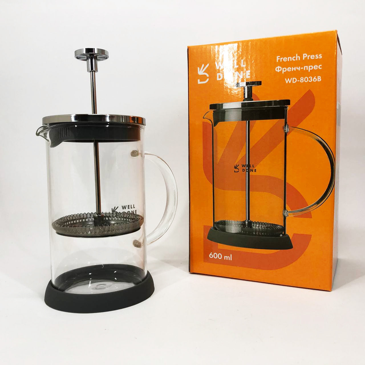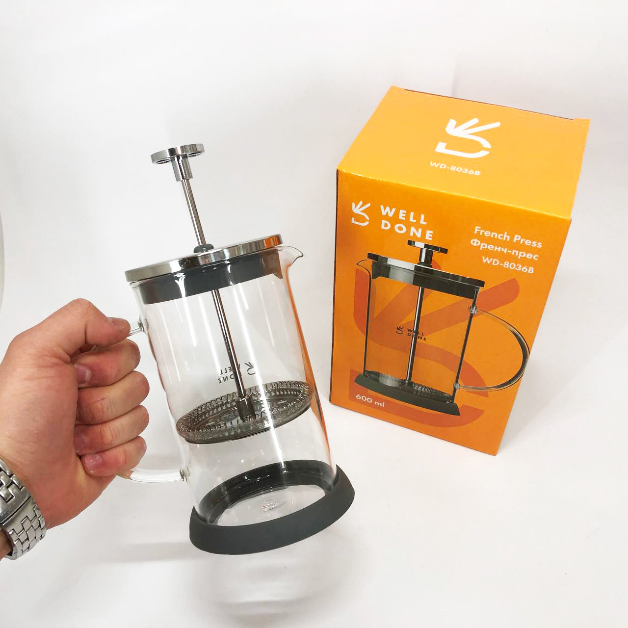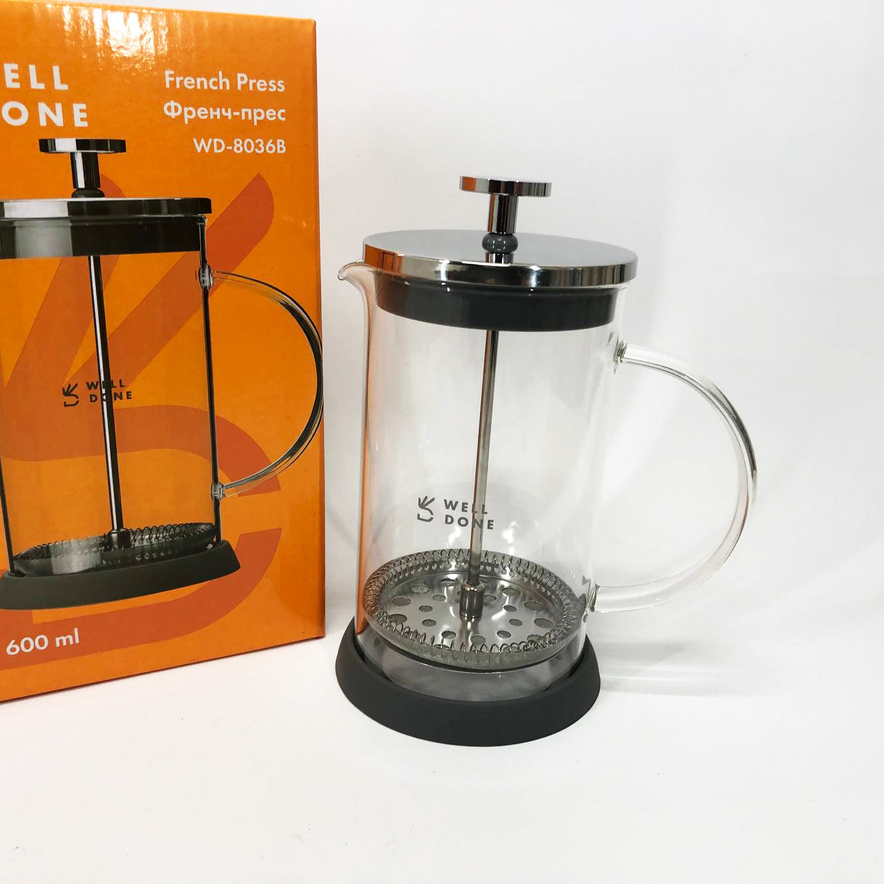 - Френч-пресс Well Done из термостойкого стекла 600 мл - это стильный и удобный аксессуар для вашей кухни.