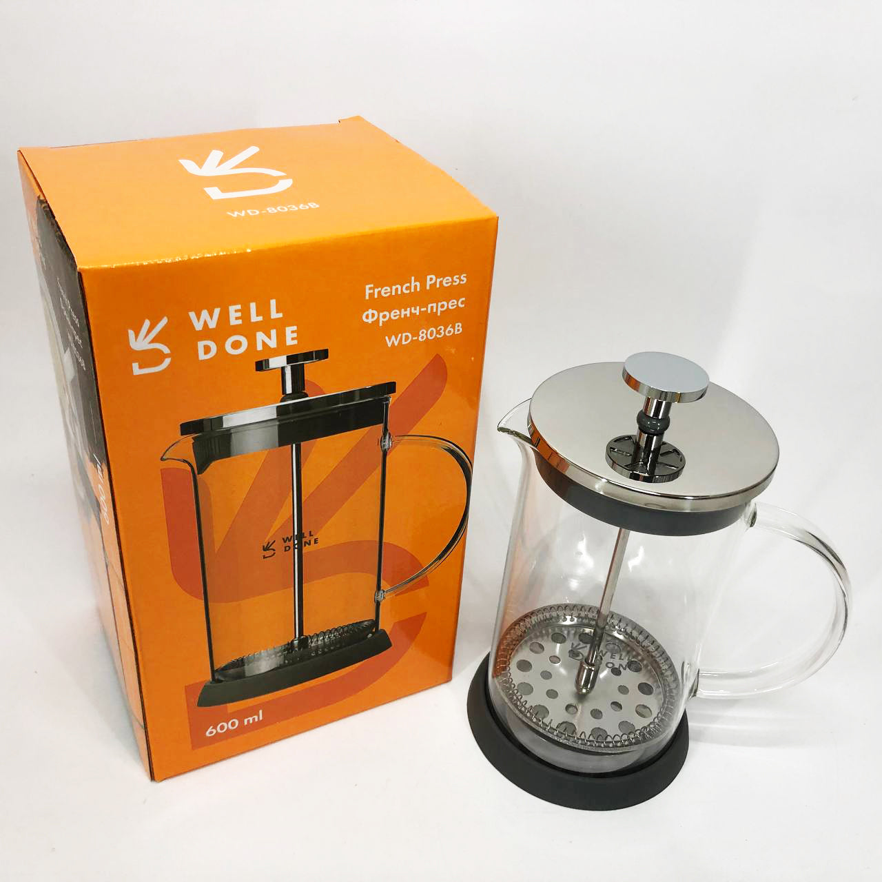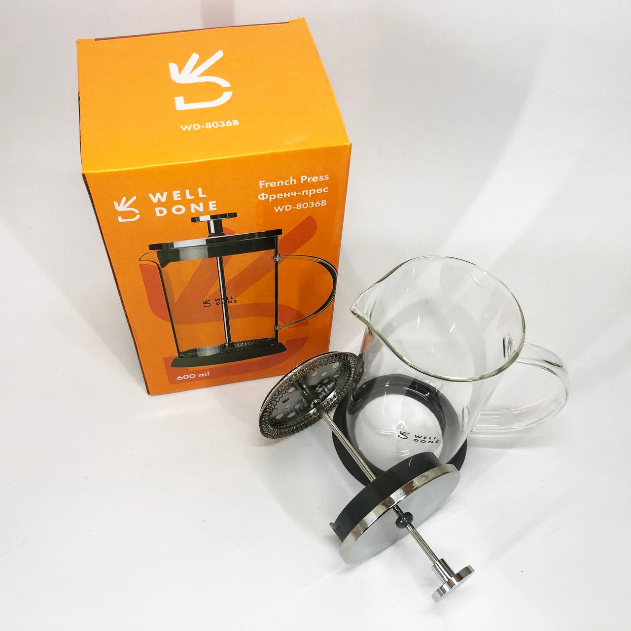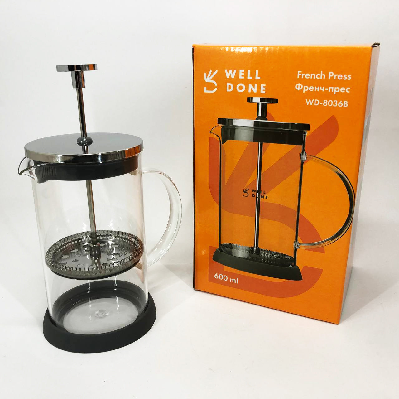 - Френч-пресс Well Done из термостойкого стекла 600 мл - это стильный и удобный аксессуар для вашей кухни.