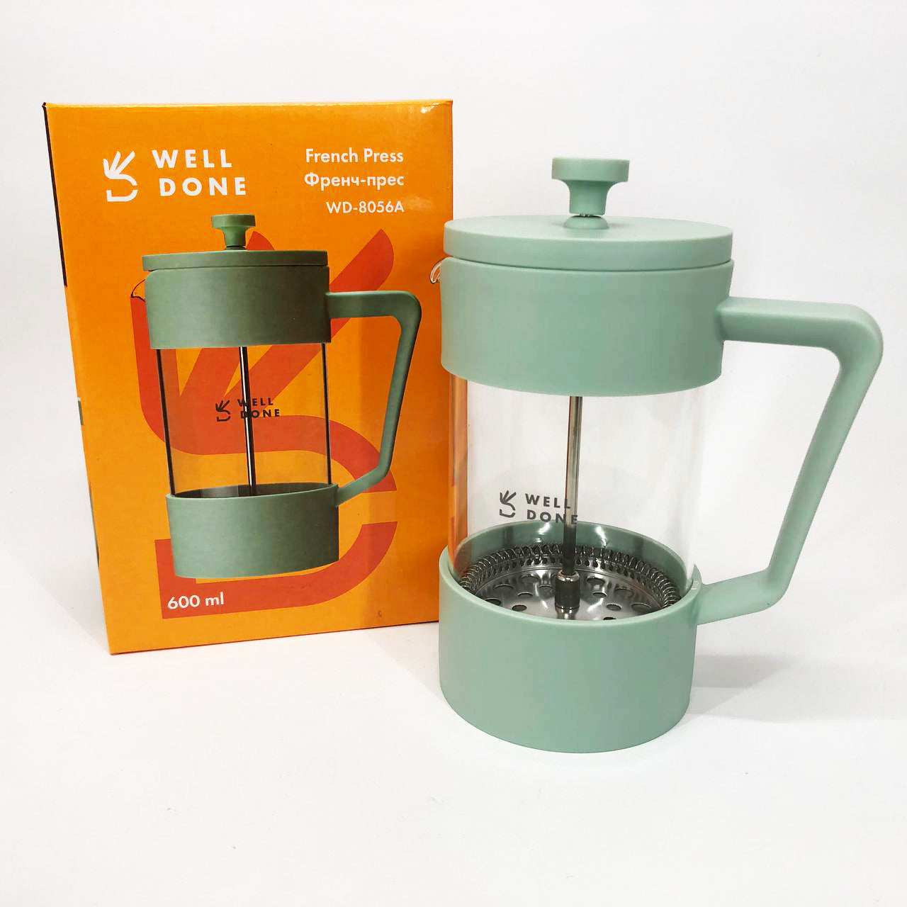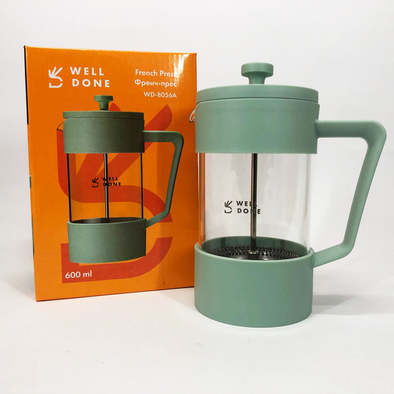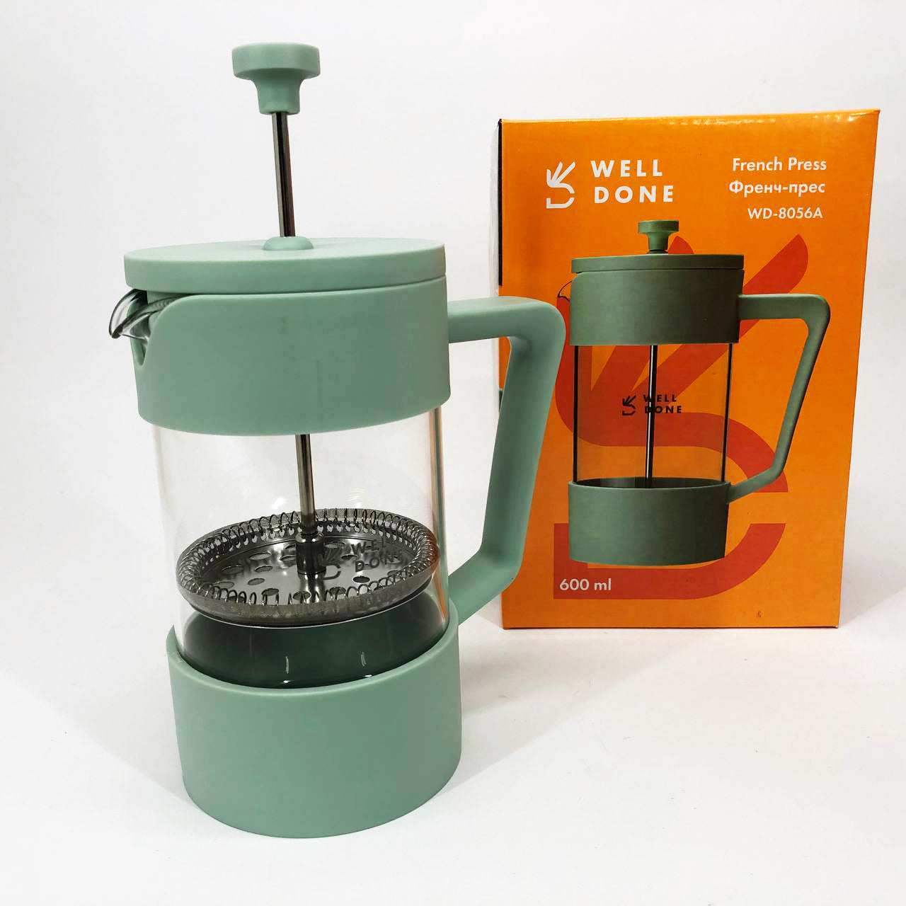 Френч-пресс Well Done WD-8056A 600 мл мятный, Стильный стеклянный заварочный чайник, Френч для чая