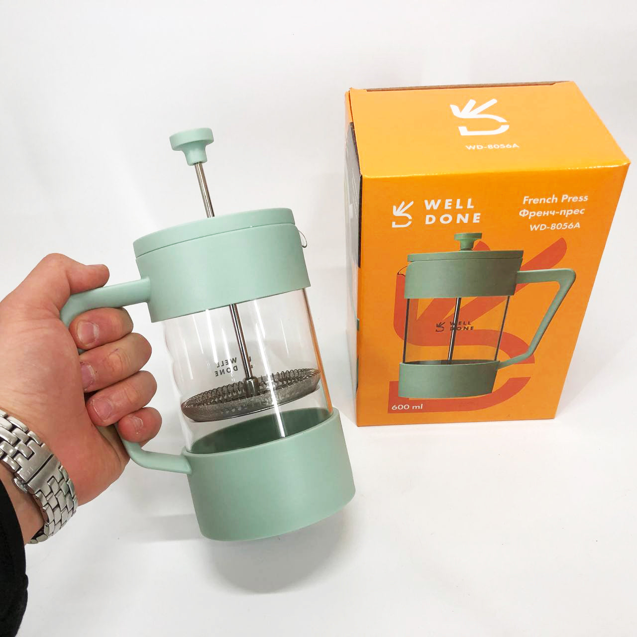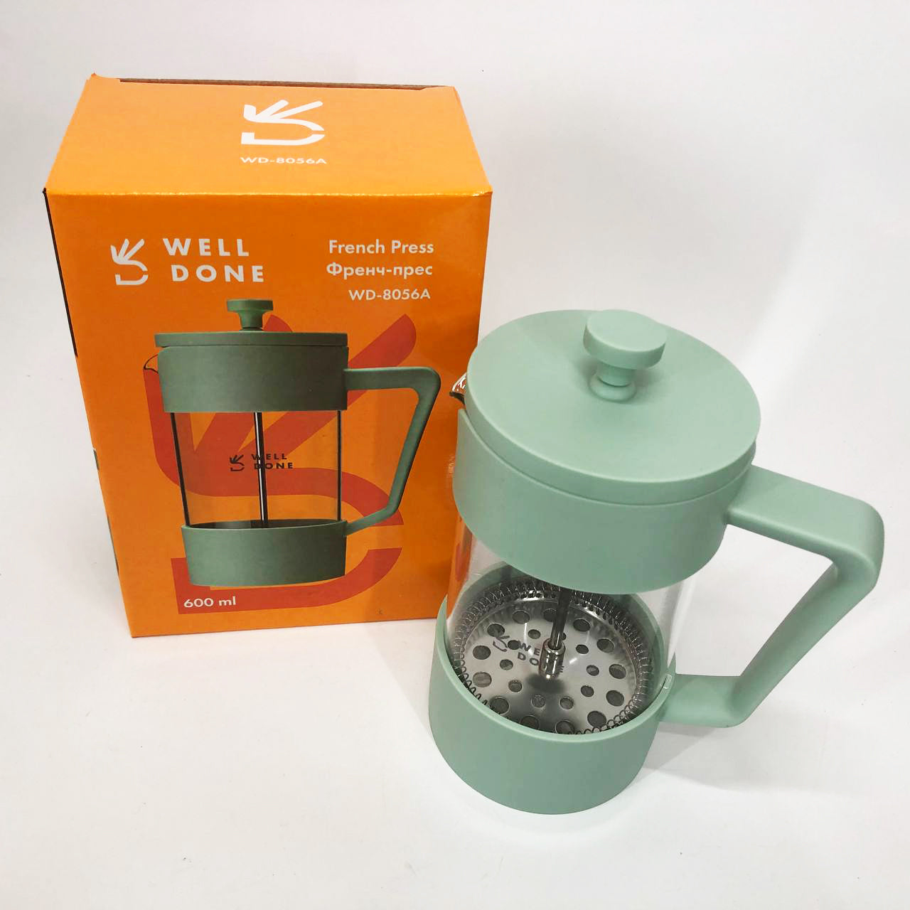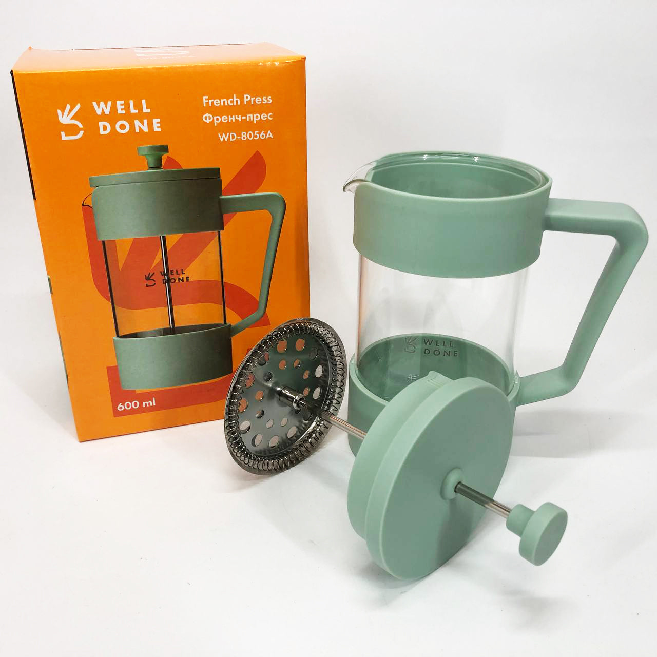 Френч-пресс Well Done WD-8056A 600 мл мятный, Стильный стеклянный заварочный чайник, Френч для чая