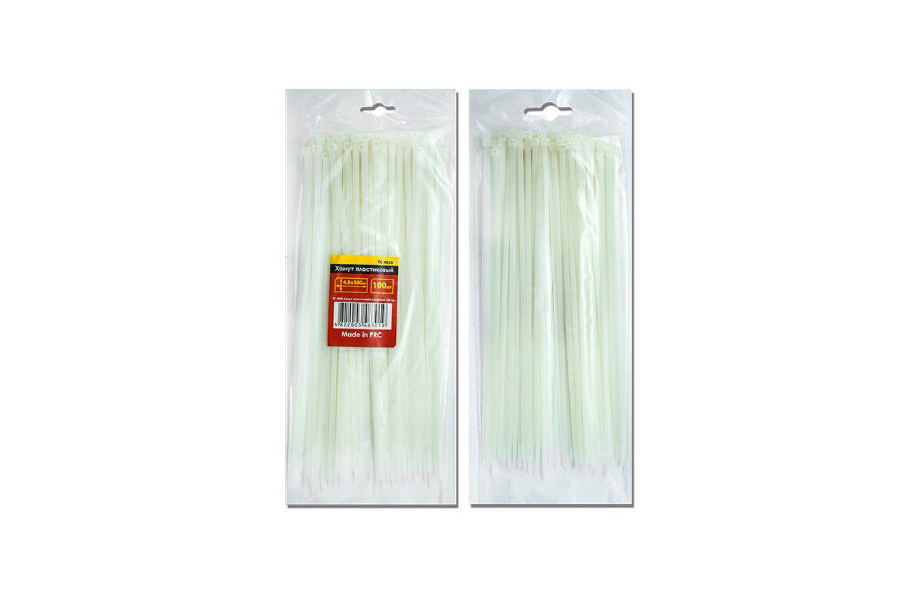 Хомут пластиковый (стяжка нейлоновая) - ленточный хомут, предназначен для объединения проводов и кабелей в жгуты (бондаж), а также крепления к несущим элементам и направляющим при прокладке кабельных трасс. Цвет: белый; Количество в упаковке: 100 ед.