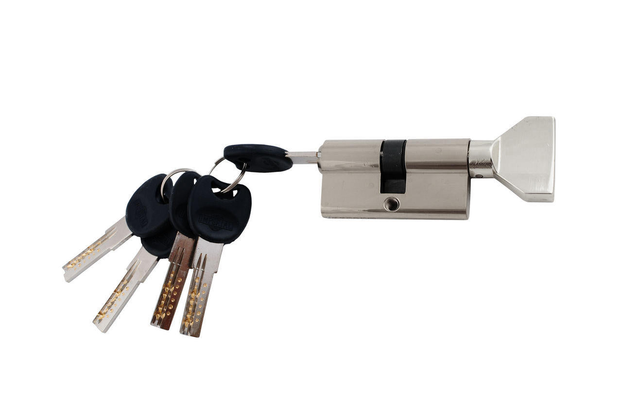 Цилиндр замка по своей конструкции состоит из шариков, подпружиненных штифтов, пластин разного размера. Для таких цилиндров применяются плоские ключи с точечными вмятинами, воронками (перфорированные ключи или ключи с лазерной насечкой). Материал: латунь.