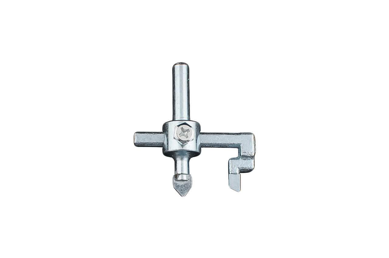 Циркуль под дрель – дополнительное устройство для создания в плитке сквозного отверстия, например, под розетку. Возможность установки диаметра, для создания сквозного отверстия, составляет 20-90 мм. Циркуль под дрель устанавливается в обычный патрон для дрели.