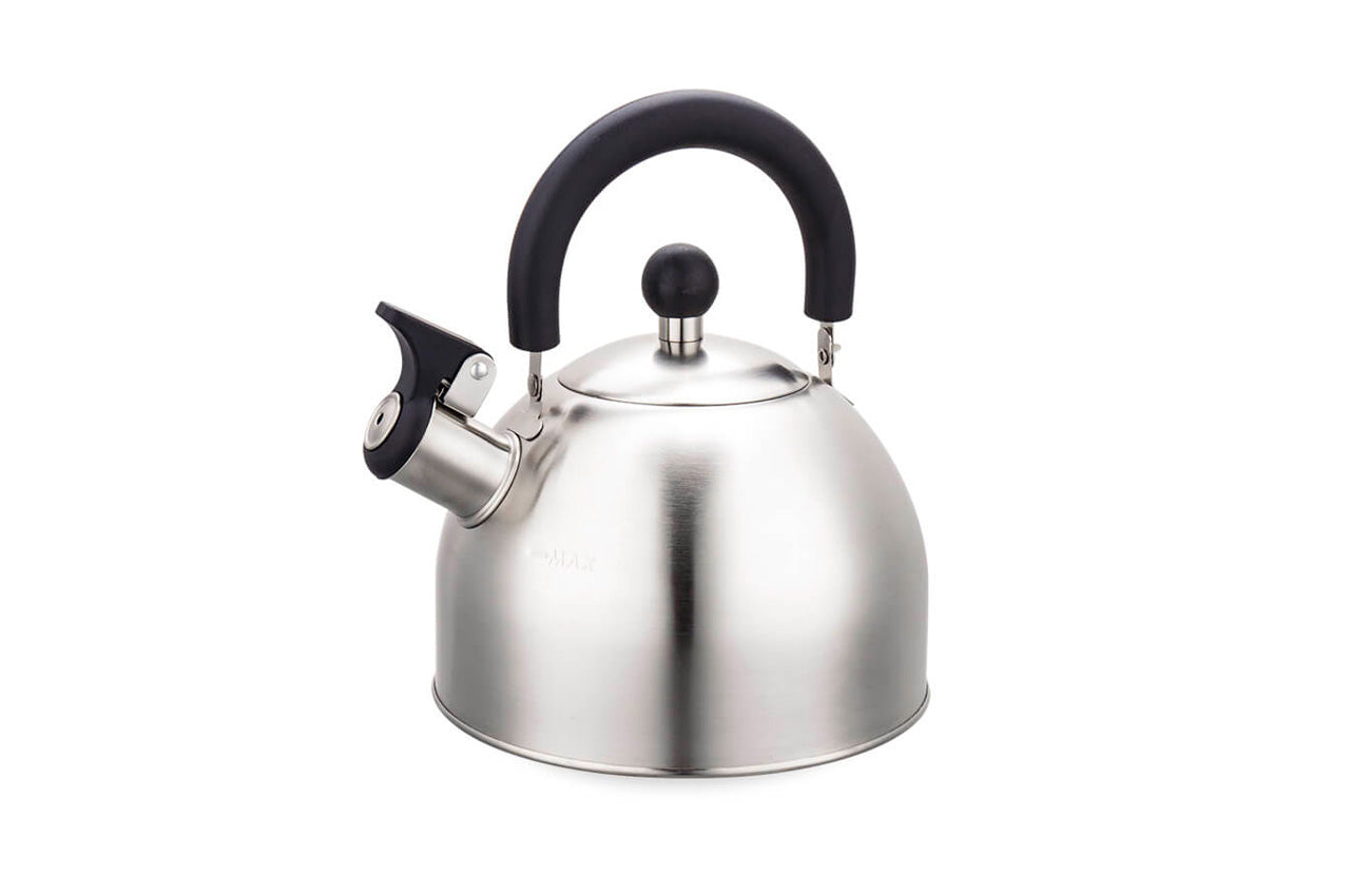 Чайник объемом в 1,6 л изготовлен из высококачественной нержавеющей стали с глянцевой полировкой. Оснащен клапаном-свистком и рычагом для безопасного открывания/закрывания. Однослойное индукционное дно.Крышка чайника стальная с бакелитовой ручкой. Подходит для всех типов плит, включая индукционные.