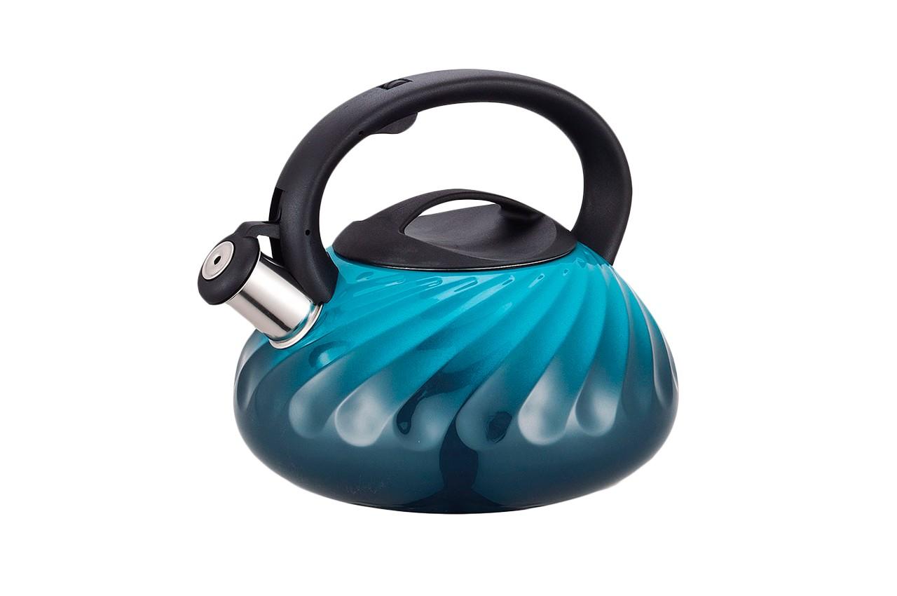 Чайник Maestro 3 л., изготовленный из высококачественной нержавеющей стали с комбинированной полировкой в голубом цвете. Стальные изделия отличаются чрезвычайной прочностью и долговечностью, обладают высокими гигиеничными и антикоррозийными свойствами, а также не требуют особого ухода и легко моются. Оснащен не нагревающейся пластиковой ручкой. Благодаря насадке-свистку, с кнопкой для открывания на ручке, Вы точно будете знать о моменте закипания воды.