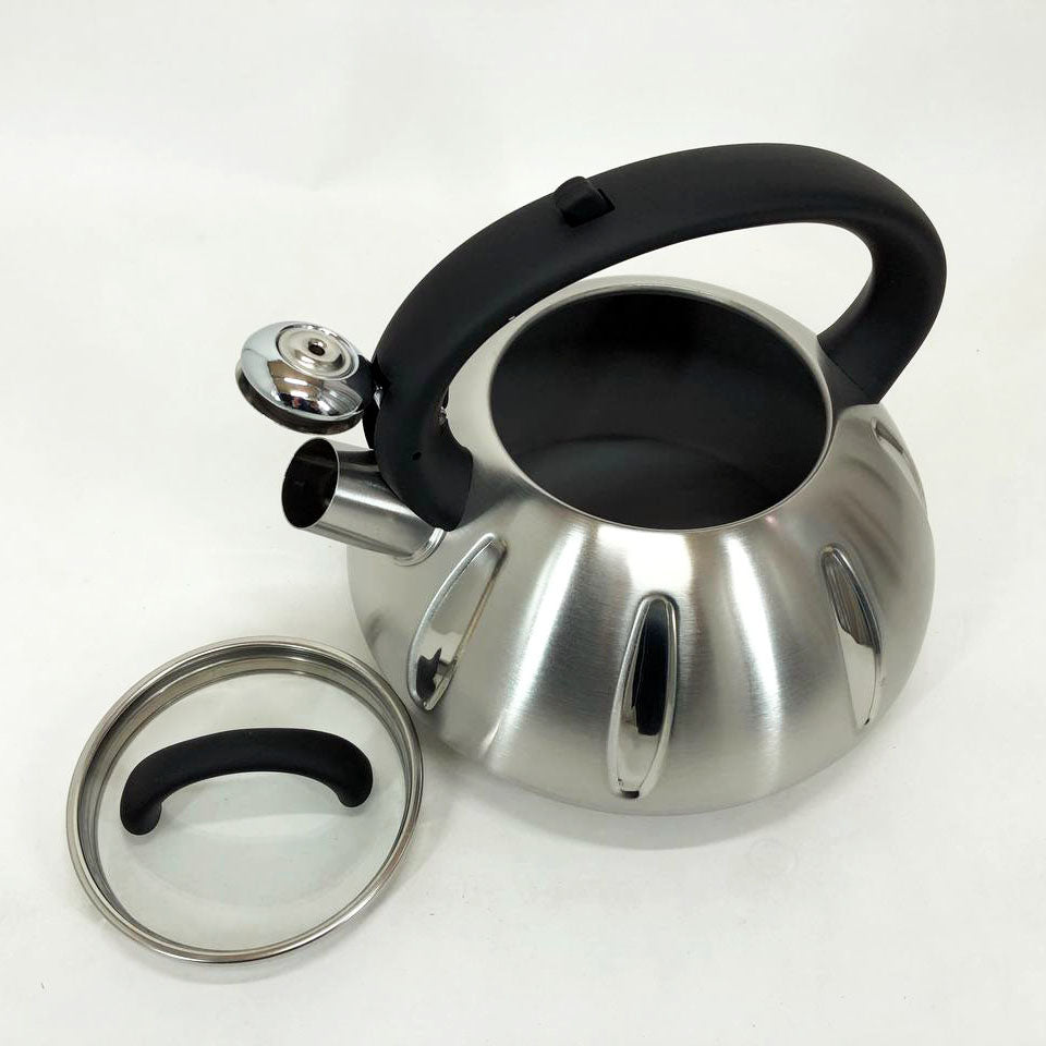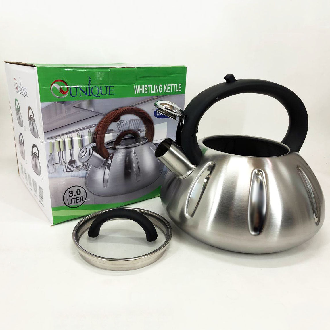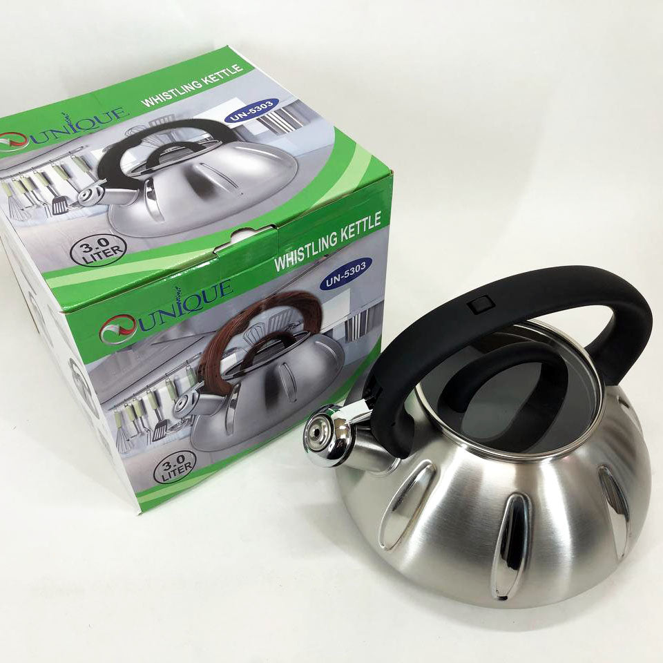 Чайник со свистком Unique UN-5303 кухонный на 3 литра, металический чайник из нержавейки. Цвет: черный