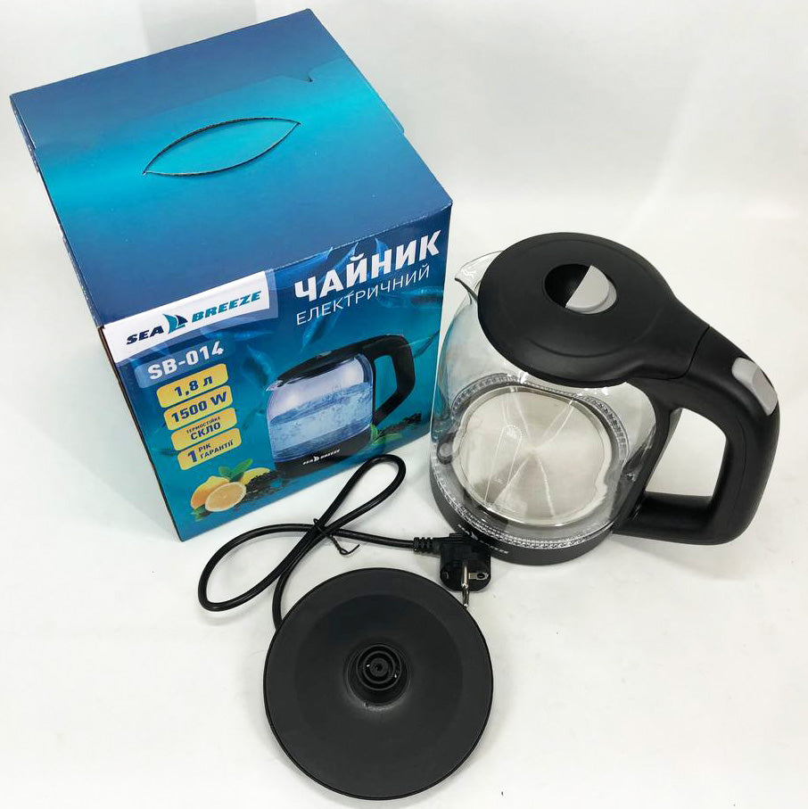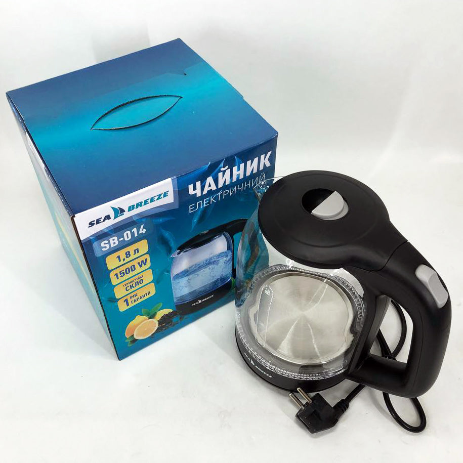 Чайник электрический SeaBreeze SB-014 1.8 л 1800 Вт, чайник прозрачный с подсветкой, электрочайник