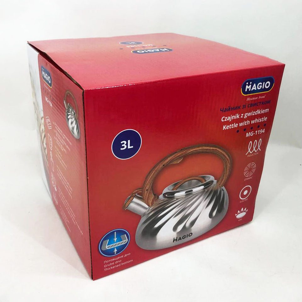 Чайник Magio MG-1194 3 л со свистком, чайник со свистком для индукционной плиты, чайник газовый