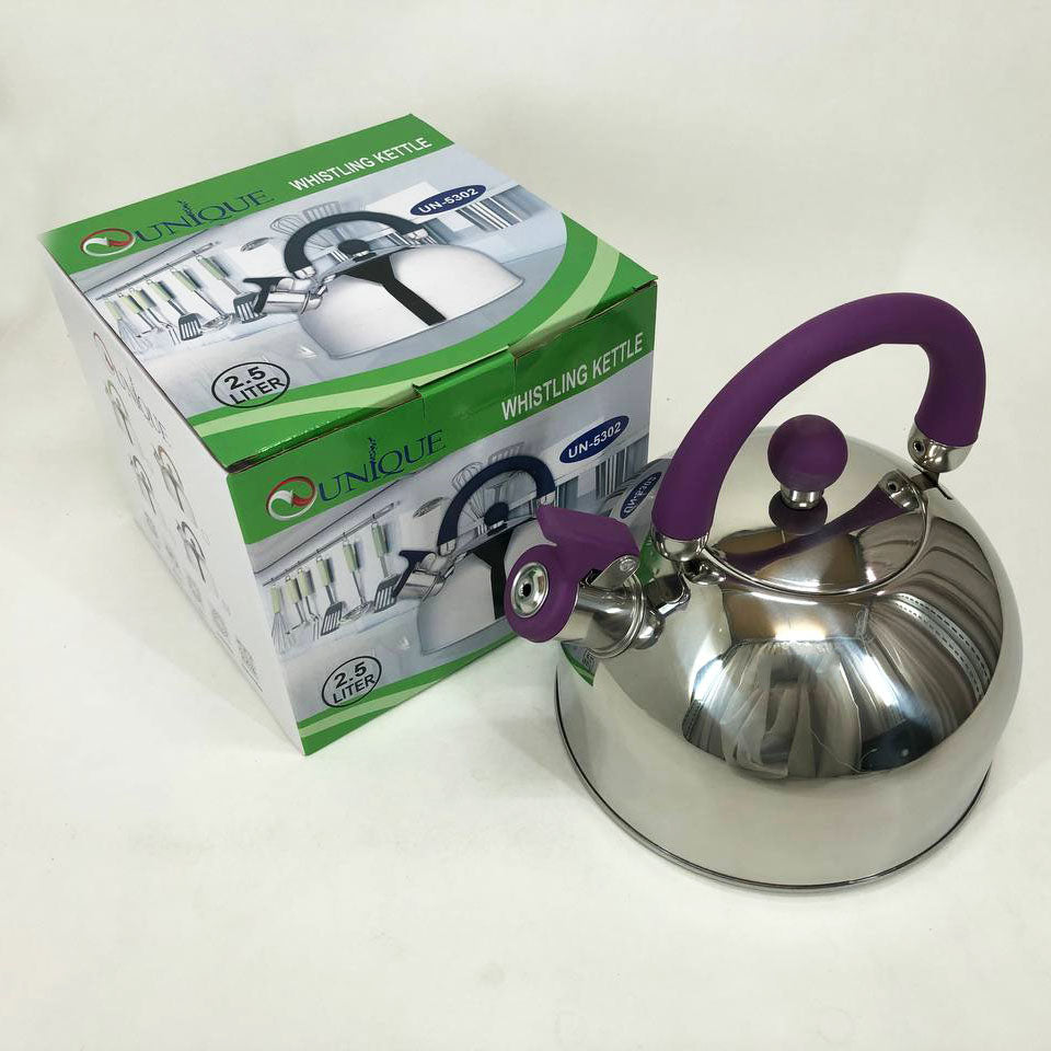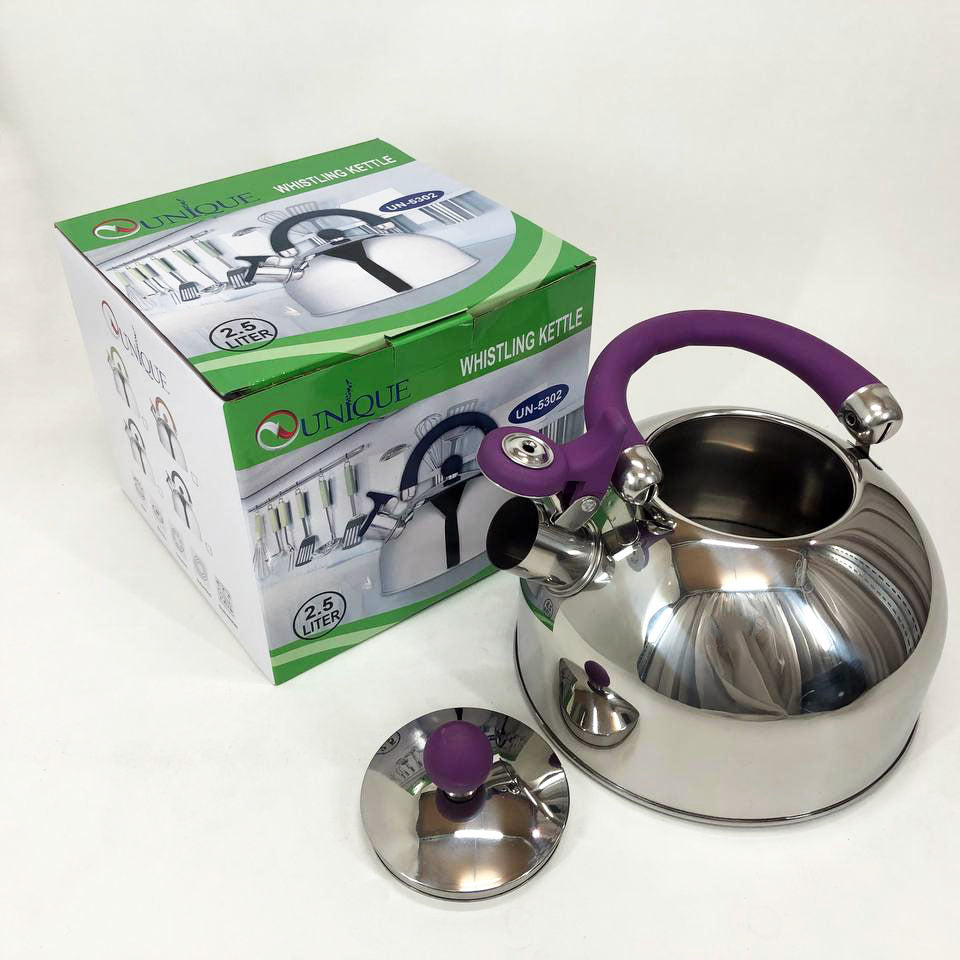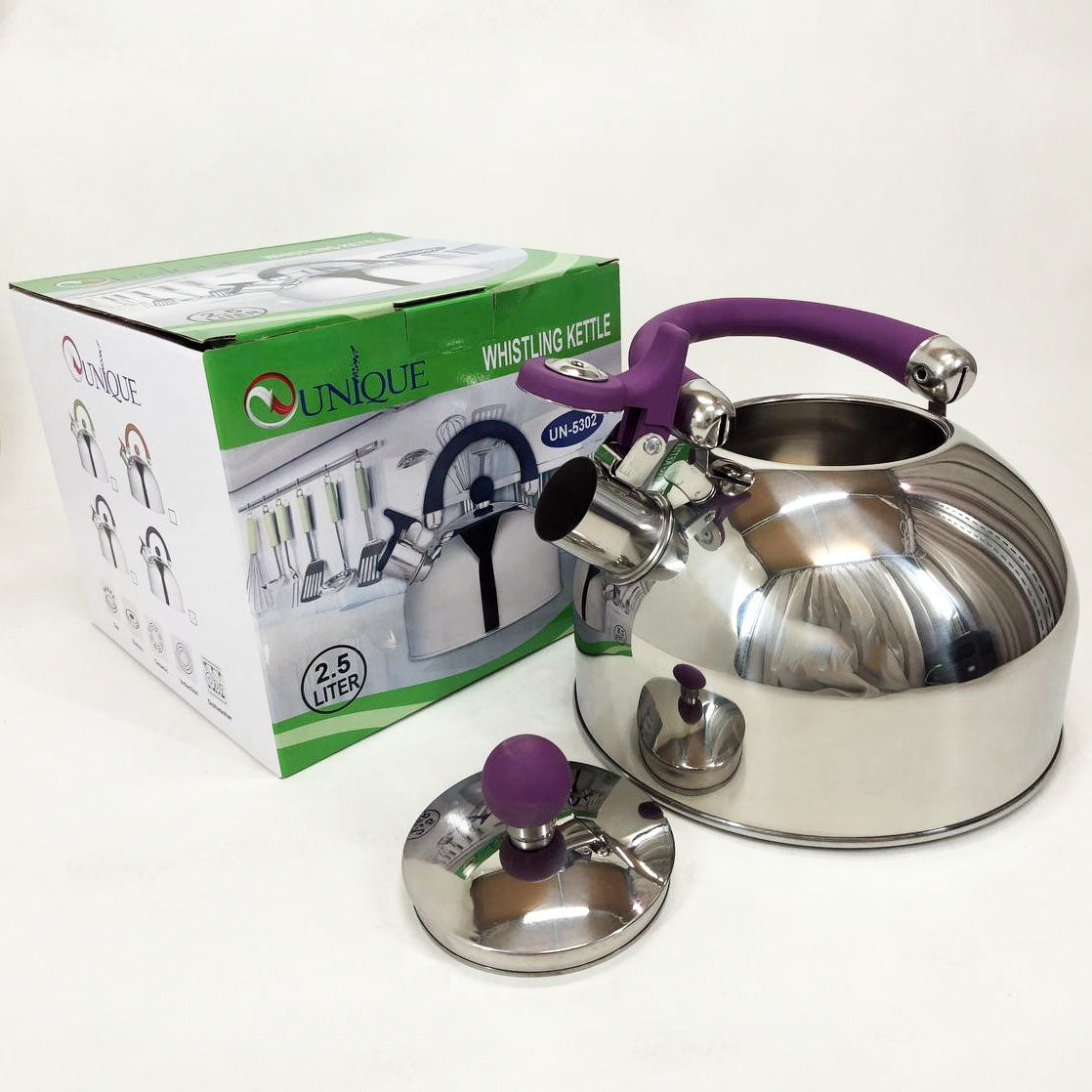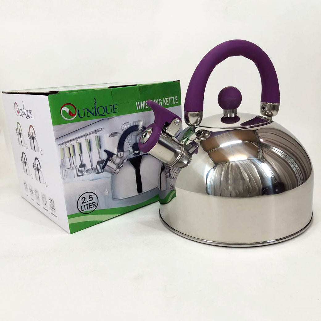 Чайник Unique со свистком UN-5302 2.5 л, красивый чайник для газовой плиты. Цвет: фиолетовый