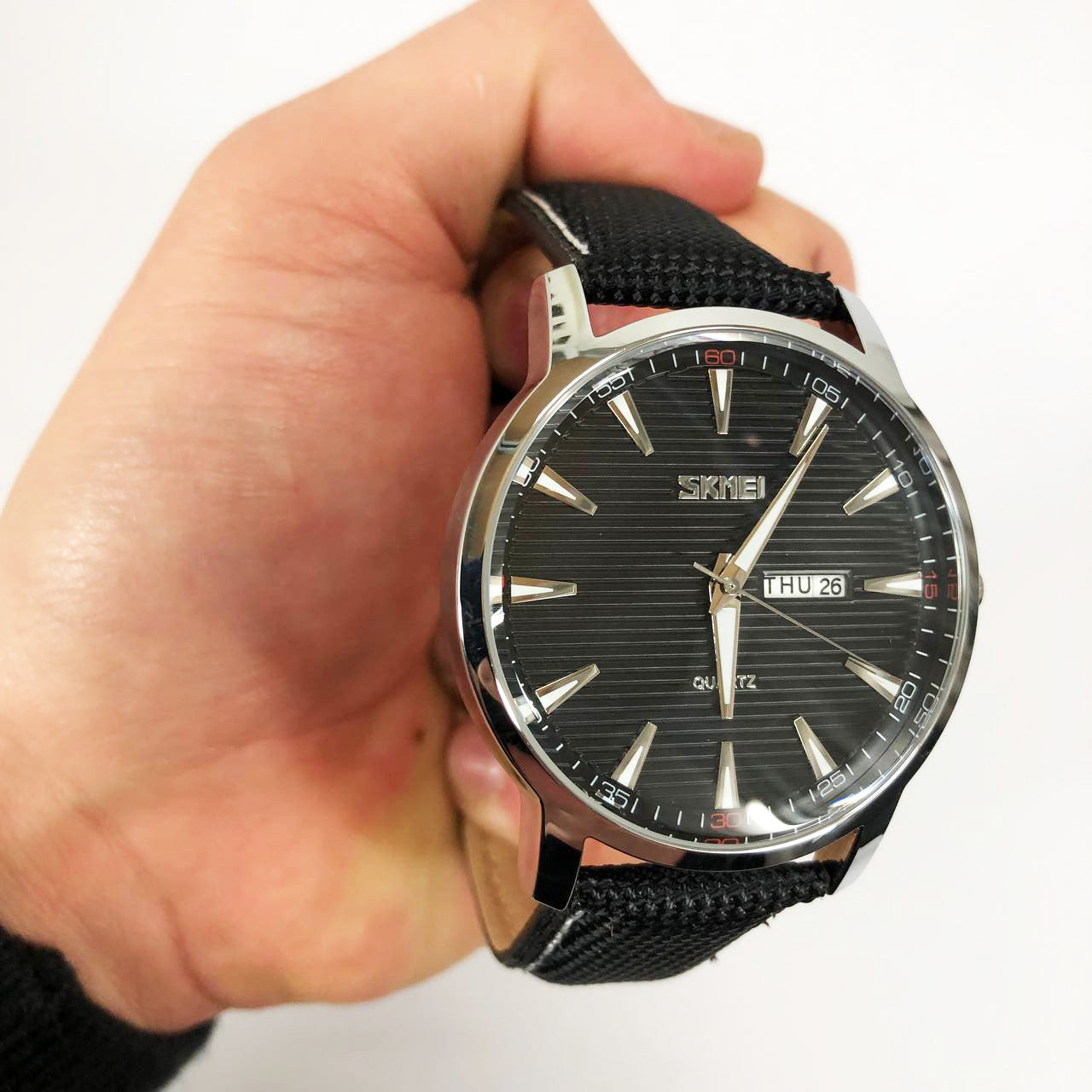 Часы наручные мужские SKMEI 9303SIBK, часы кварцевые мужские, стильные статусные наручные часы стрелочные