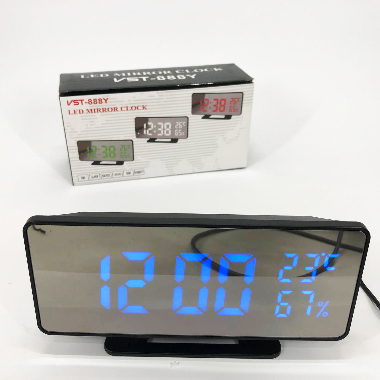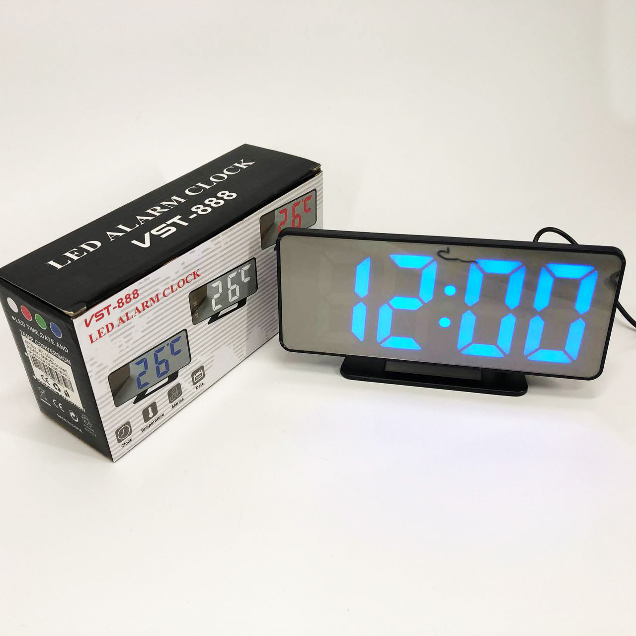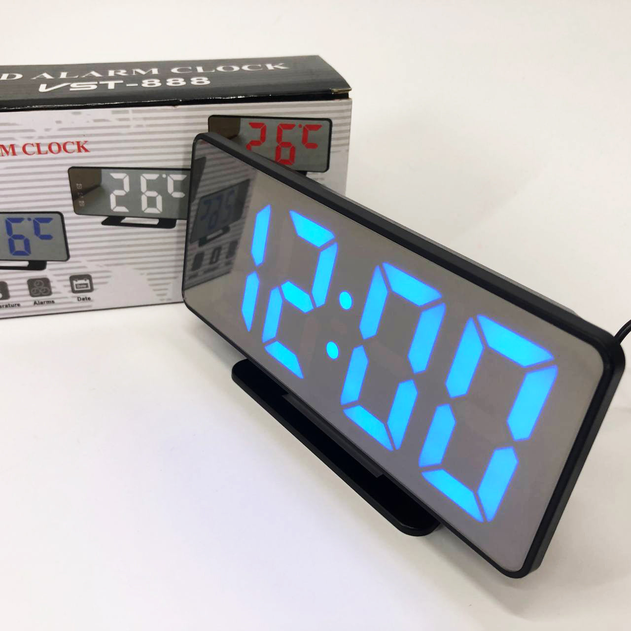 Часы настольные зеркальные VST-888Y-5 USB с синим циферблатом, Настольные часы с подсветкой