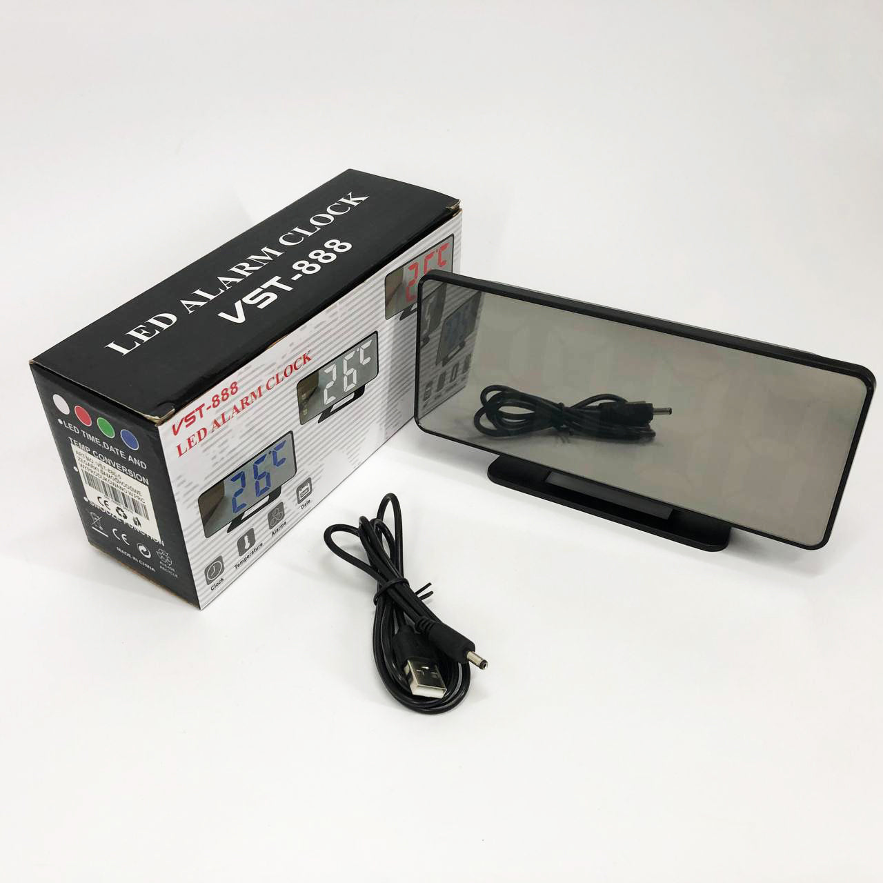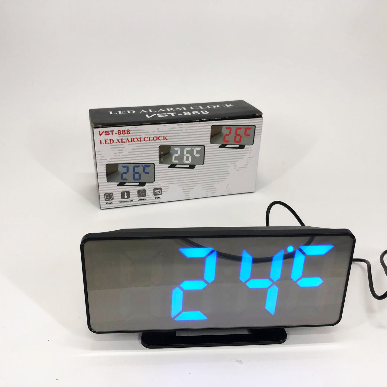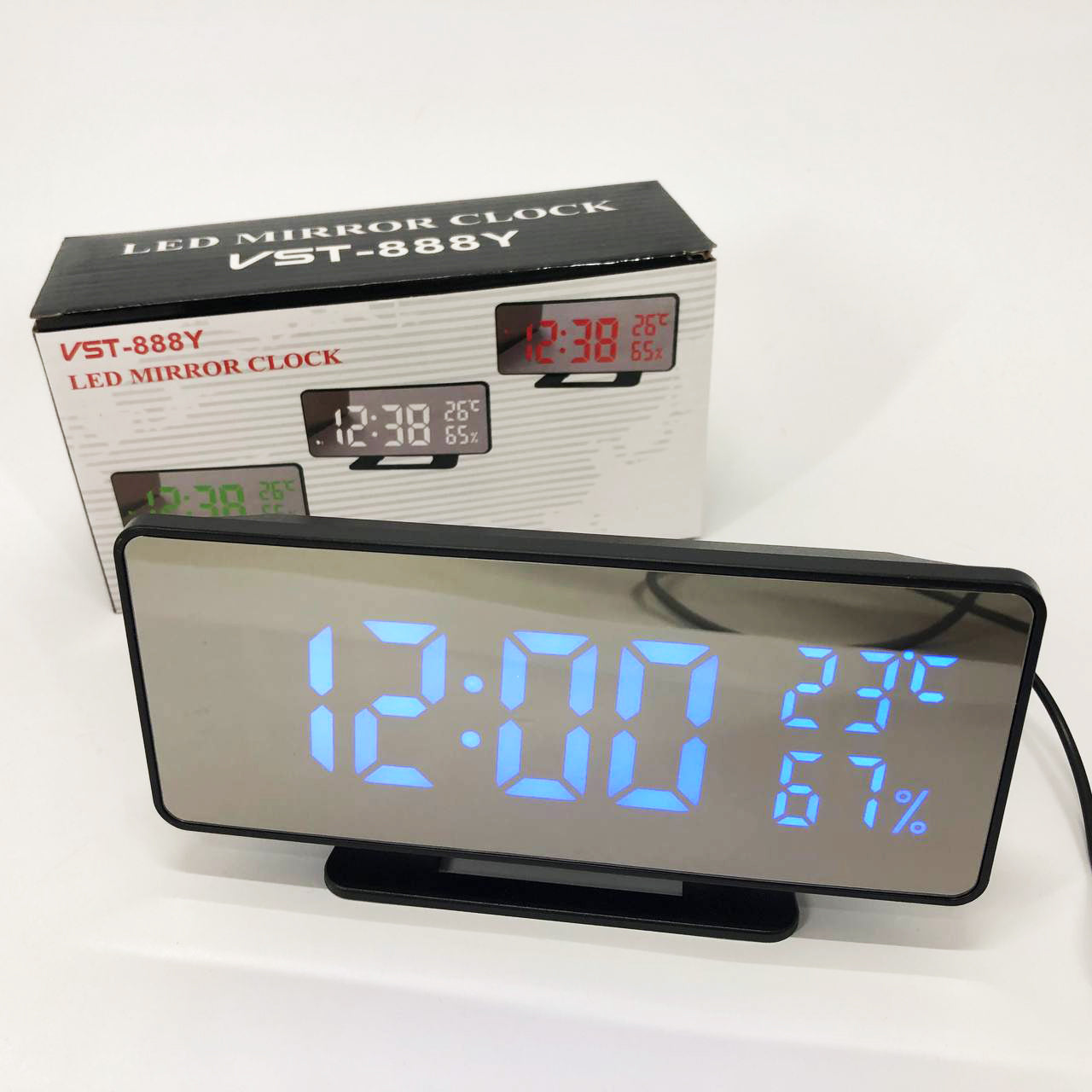 Часы настольные зеркальные VST-888Y-5 USB с синим циферблатом, Настольные часы с подсветкой