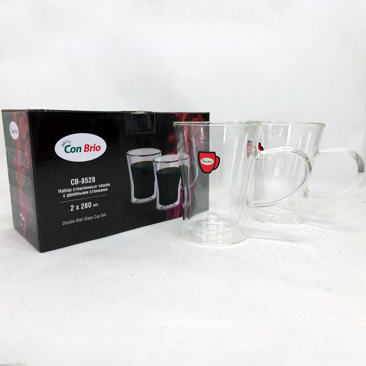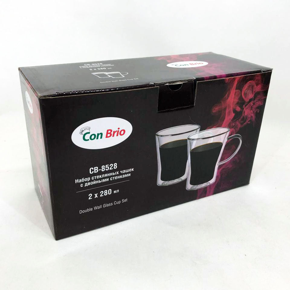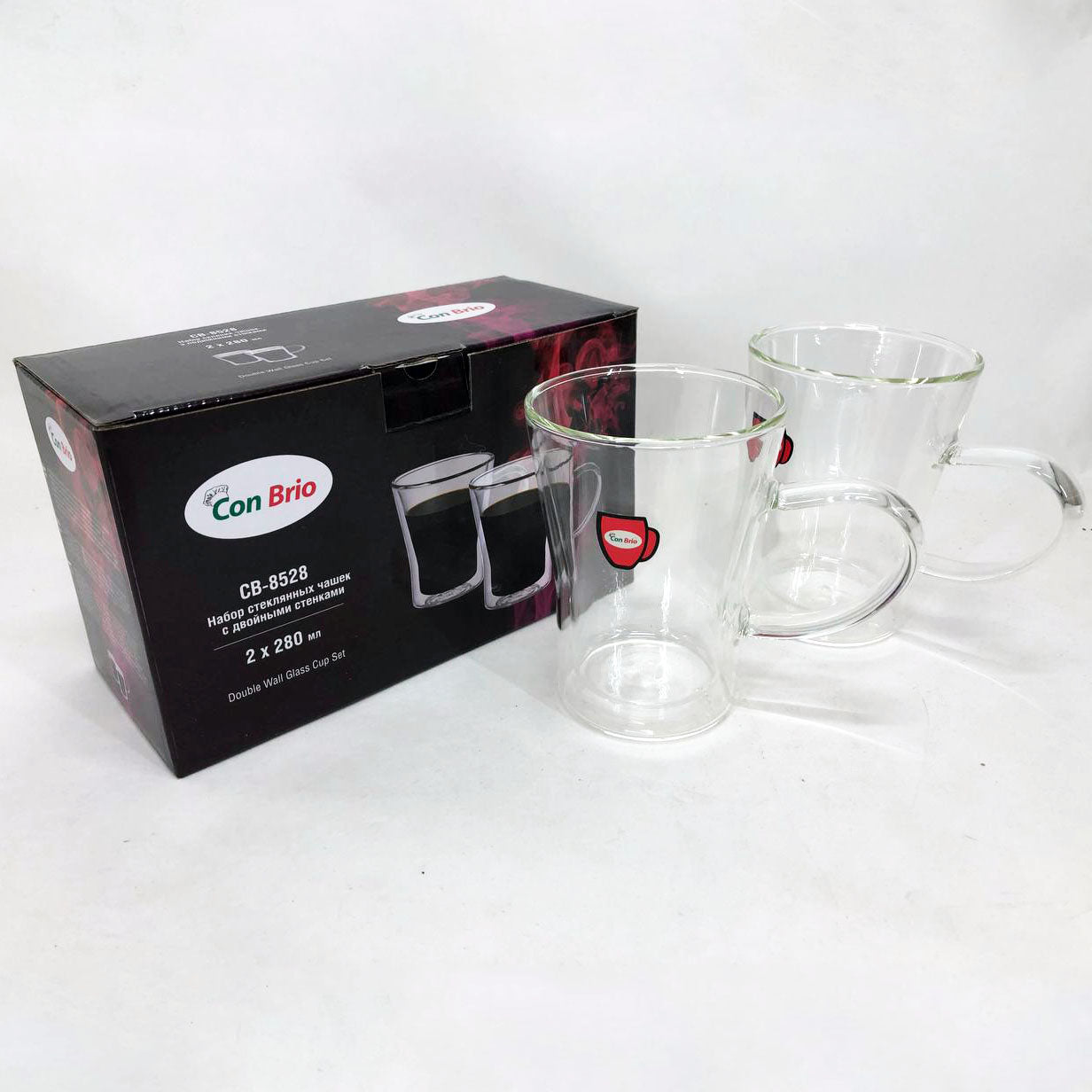 Чашки с двойными стенками Con Brio 280 мл CB-8528 2шт, кружки стеклянные с двойным дном