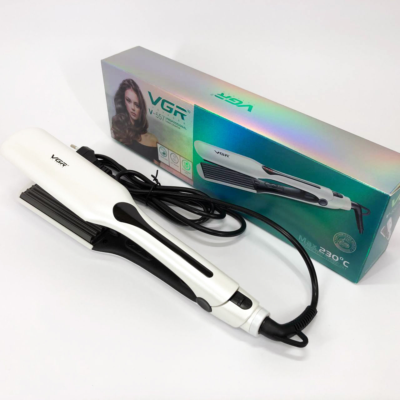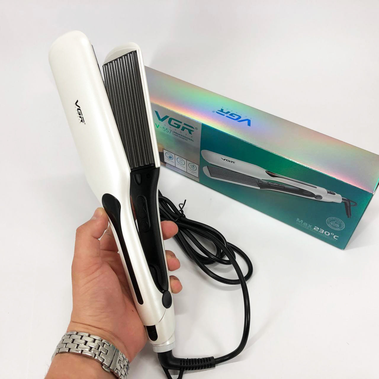 Профессиональный утюжок гофре для волос VGR V-557 с высокопрочным керамическим покрытием и пластинами с 7-ю зубьями и общей шириной 45 мм, сделает Вашу прическу оригинальной и модной. А благодаря достаточно широким и длинным пластинам, получится сократить время создания прически вдвое. Данная модель плойки имеет 14 температурных режимов, что позволяет ее использование для всех типов волос.