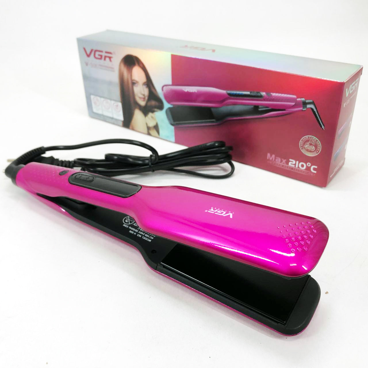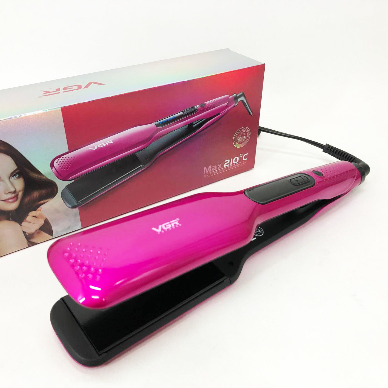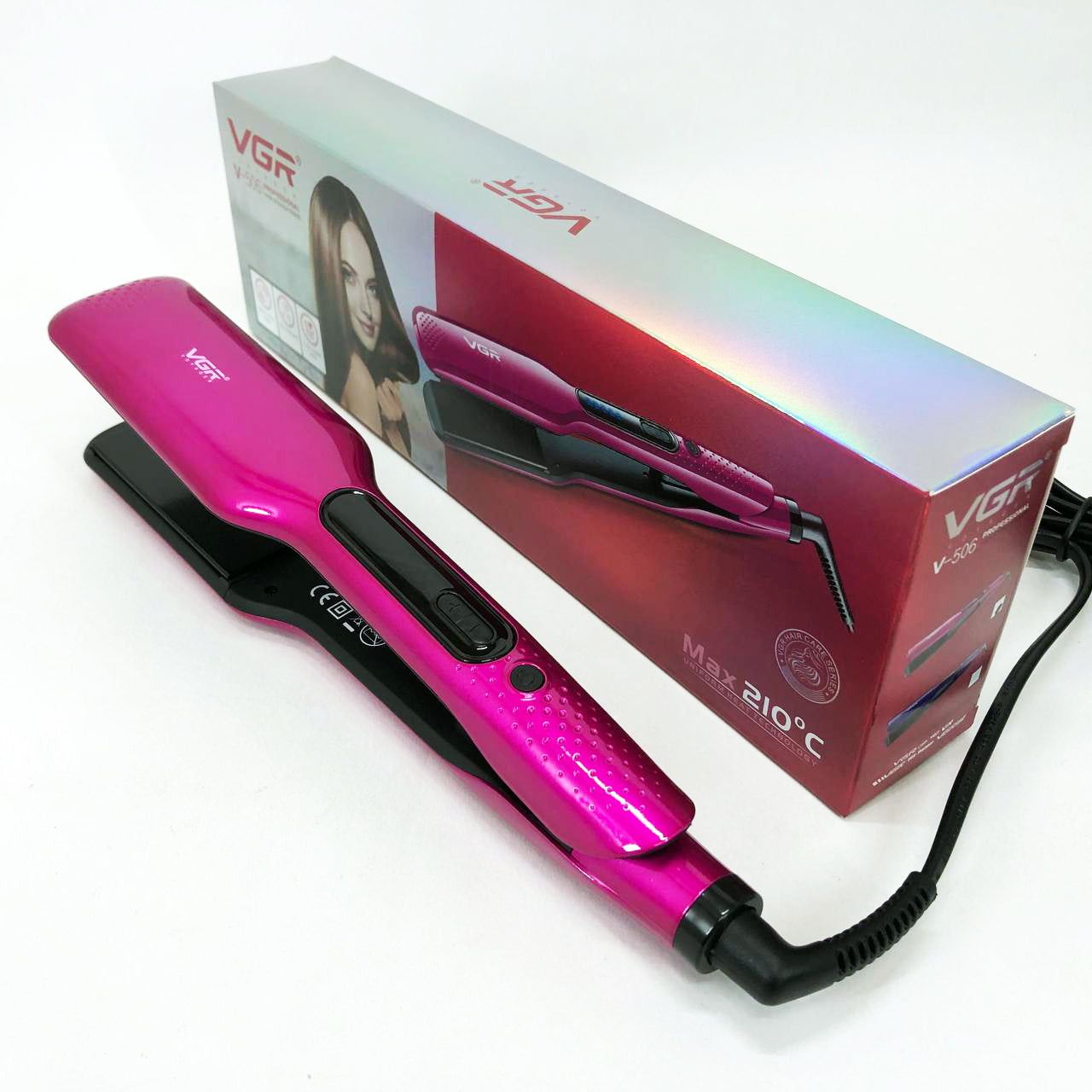 Широкий утюжок для выпрямления волос VGR V-506 мощностью 55 Вт с LED дисплеем 130-210 градусов розовый