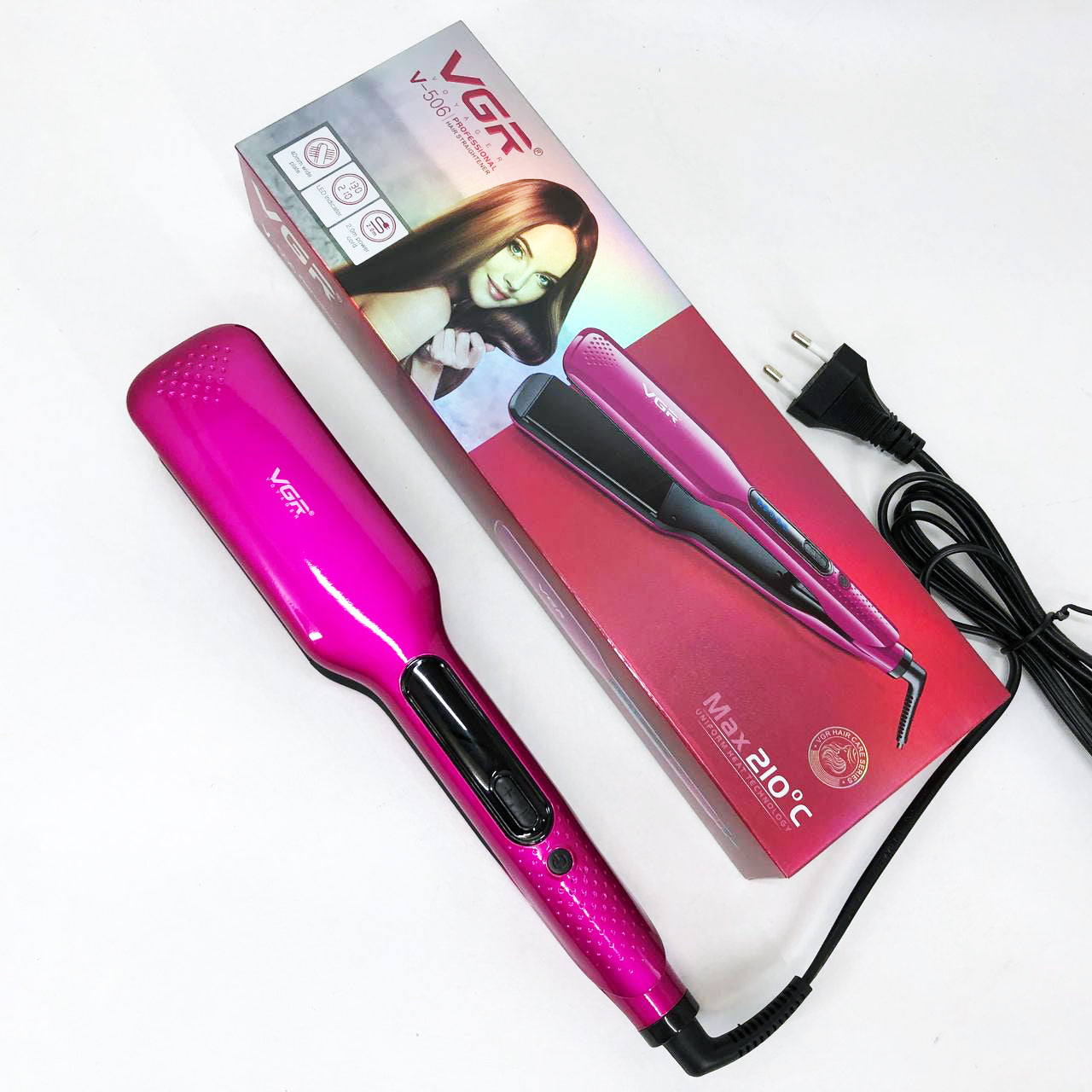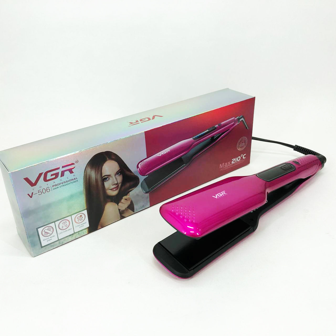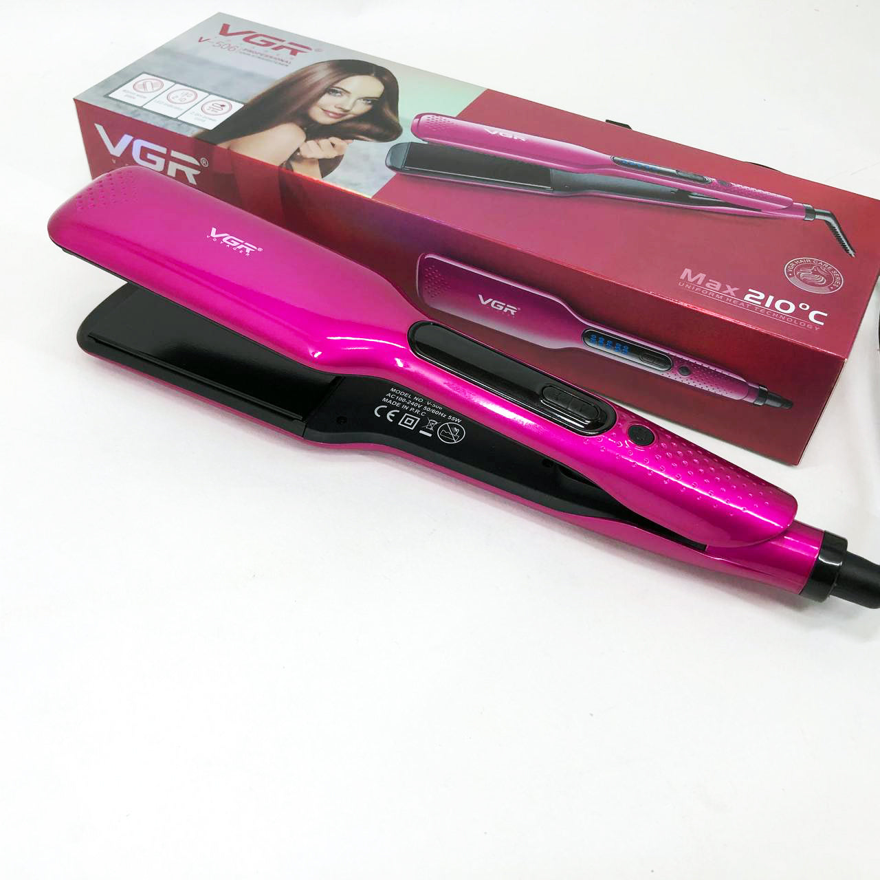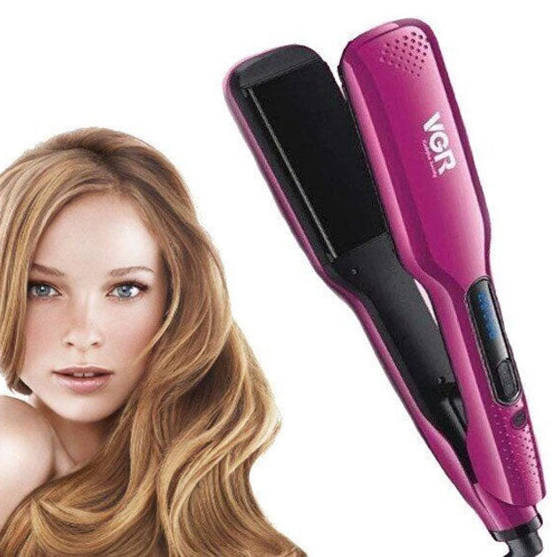 Широкий утюжок для выпрямления волос VGR V-506 мощностью 55 Вт с LED дисплеем 130-210 градусов розовый