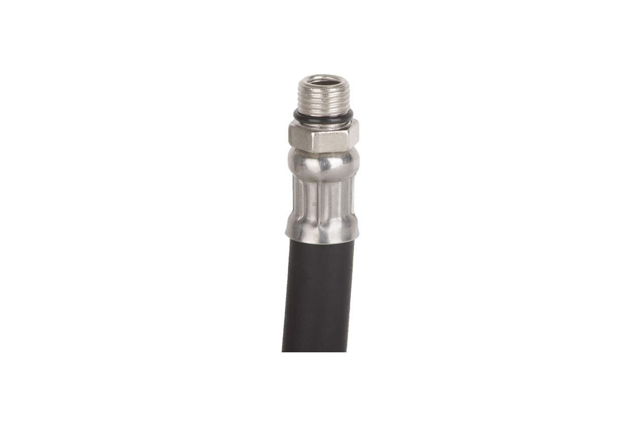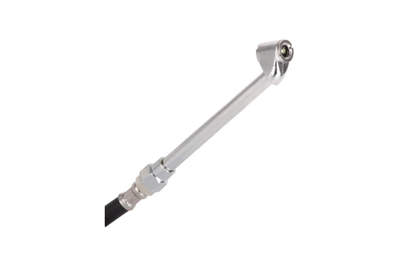 Шланг для пневмопистолета для накачивания колёс PT-0513 оснащен латунной головкой и резьбовым соединением 1/4 дюйма. Шланг длиной 500 мм отличается надежностью и качеством исполнения. Длина наконечника: 14,5 см; Особенности: двухстороннее стальное сопло; Резьба: М10 х 1