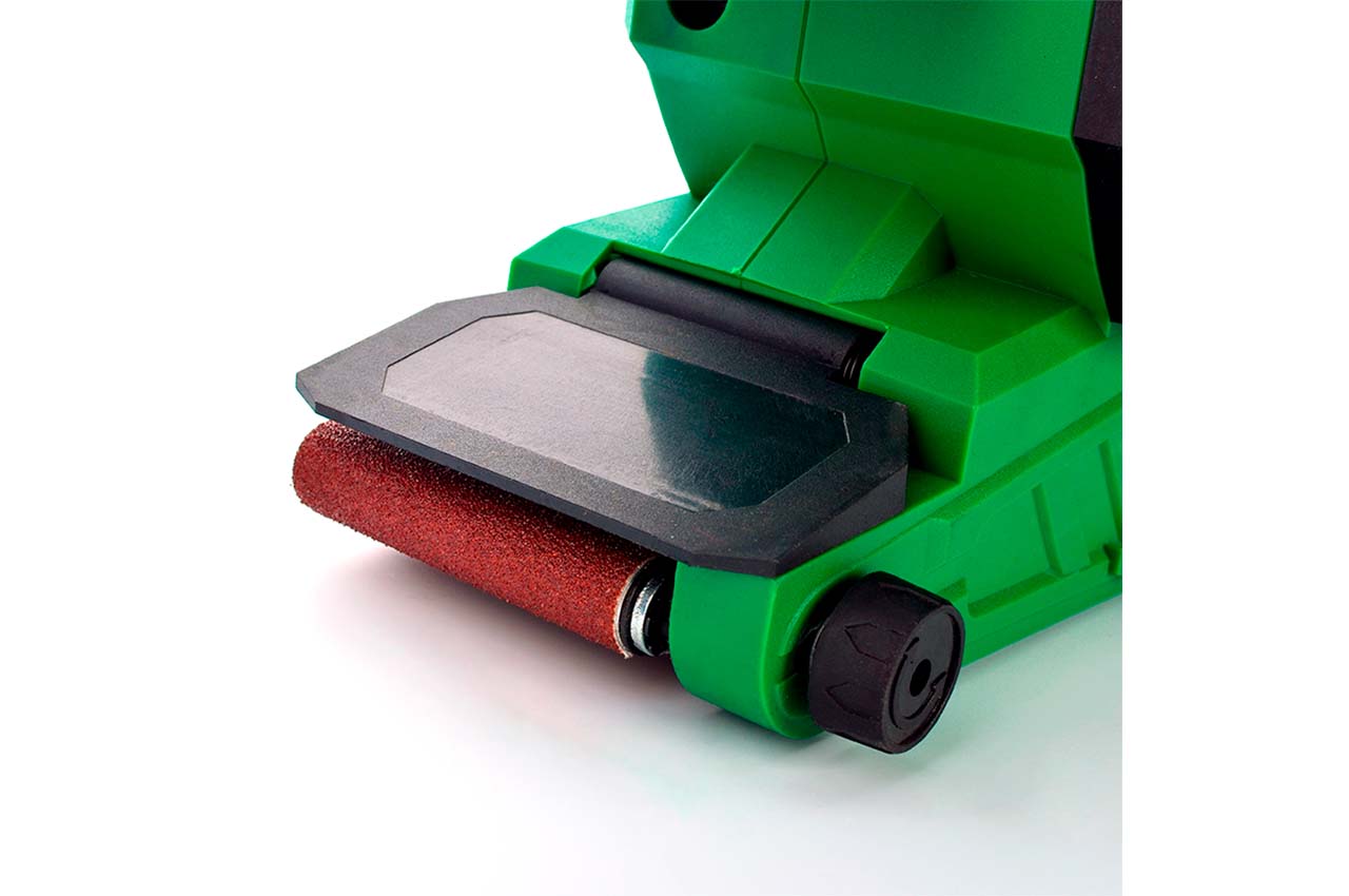 Благодаря своей рабочей мощности 1000 Вт шлифмашина хорошо справится со шлифованием деревянных, пластмассовых, металлических поверхностей и поверхностей, покрытых грунтовкой, удалением следов коррозии и старых лакокрасочных покрытий. А благодаря возможности настроить скорость движения ленты от 120 до 400 м/мин, можно выбрать оптимальный режим воздействия на различные материалы для того, чтобы получить ожидаемый результат.