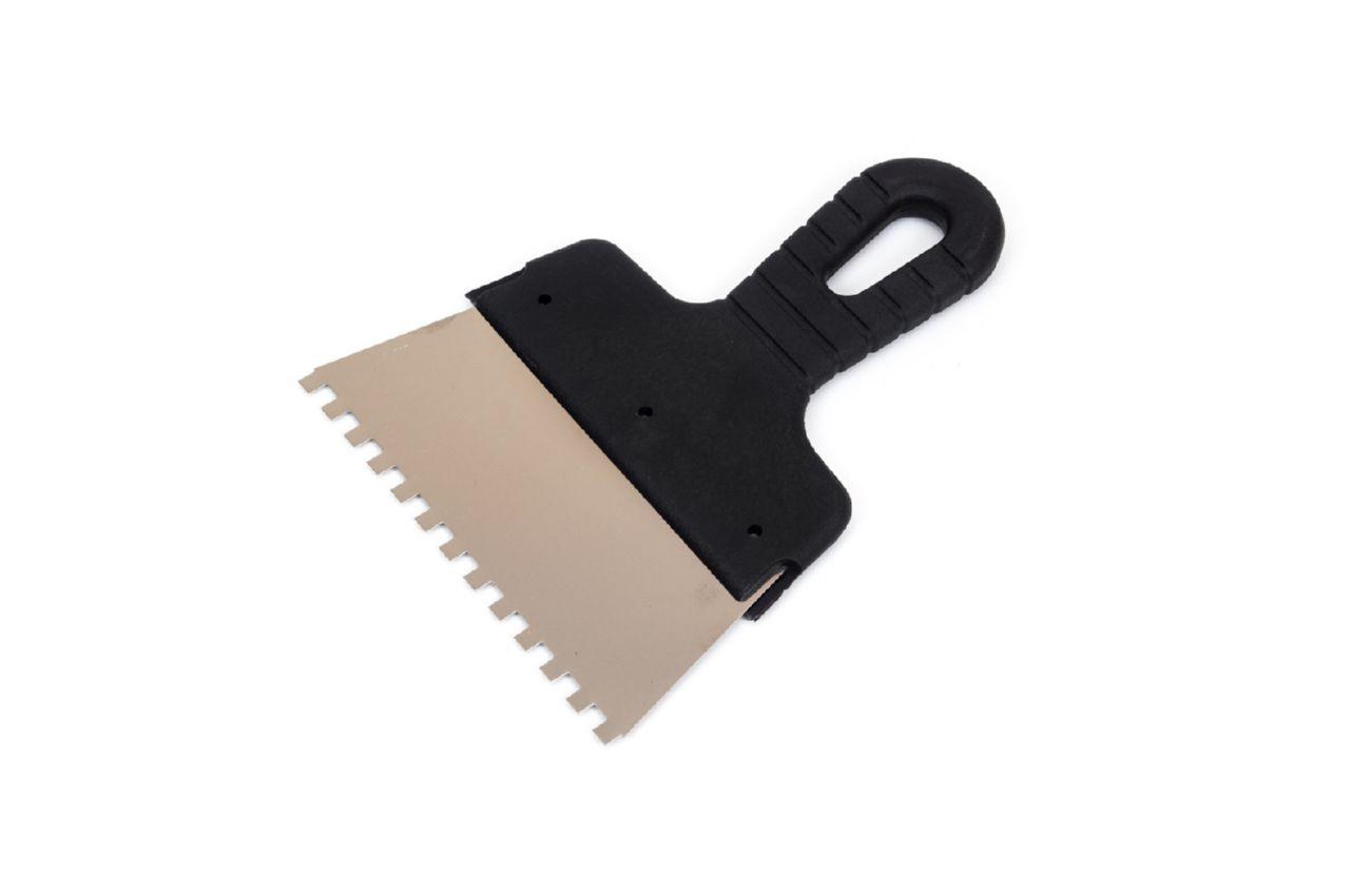 Затирка из оцинкованной стали с квадратным зубом 8х8 мм. Эргономичная пластиковая ручка надежно закреплена у основания полотна. Предназначена для равномерного нанесения и распределения различных строительных смесей по поверхности.