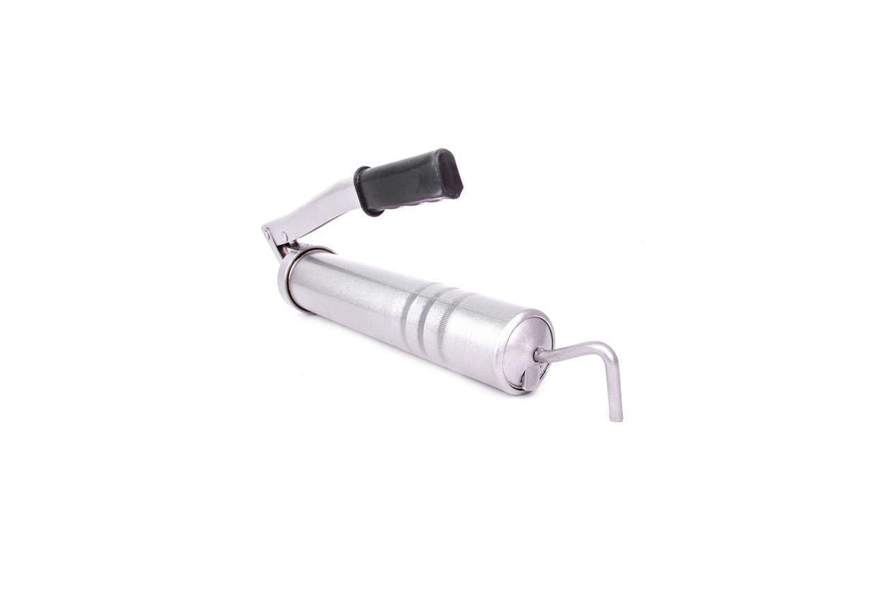 Шприц для смазки HT-0063 предназначен для откачки и подачи масел, технических жидкостей к узлам и деталям автомобиля: коробке передач, картерам мостов, коленчатым валам, клапанам, подшипникам и пр. Конструкция шприца для заливки масла предельно проста: алюминиевый корпус с поршнем, верхняя и нижняя крышки, а также гибкий шланг, обеспечивающий поступление смазочных материалов. Благодаря специальному строению поршня происходит максимально полное опорожнение картриджа. Также в комплекте поставляется две насадки. Шприц может подавать за 1 ход 1,5 см3 смазки и выдерживать максимальное давление до 40 МПа.