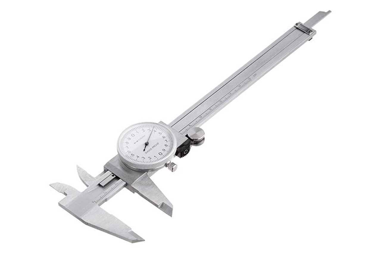 Штангенциркуль изготовлен из высококачественной нержавеющей стали, которая устойчива к ржавчине, не подвержена истиранию и характеризуется высоким ресурсом работы. Метрическая шкала выгравирована, легко считывается и не стирается со временем. Большой циферблат показывает замеры с точностью 0.02 мм.