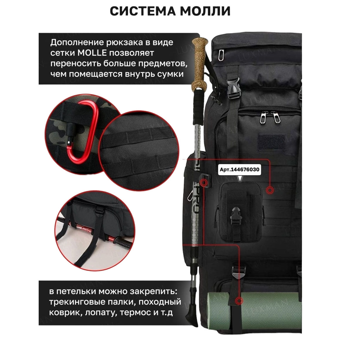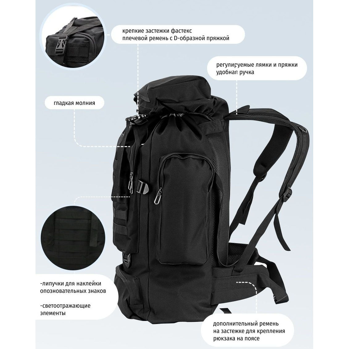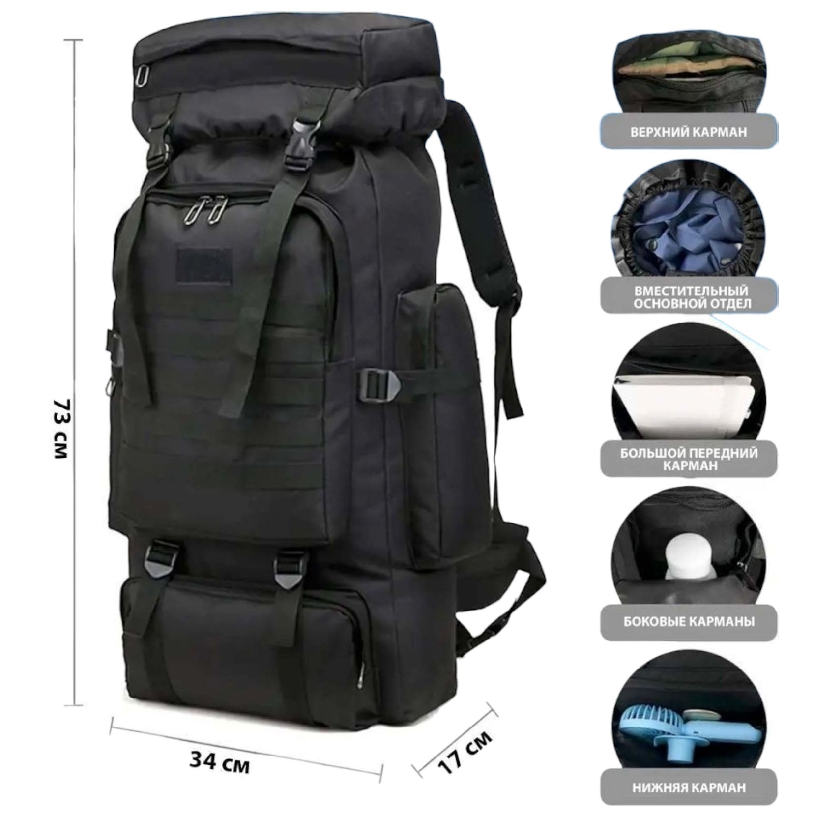 Рюкзак тактический 4в1 объемом 80 литров позволит комфортно переносить с собой личные вещи и снаряжение.